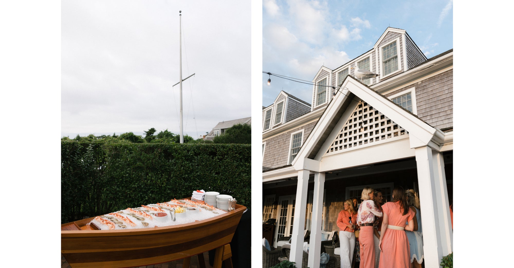 Before dinner, guests enjoyed margaritas, local beer, and rosé on the Wauwinet’s great lawn overlooking Nantucket Bay. It was fun to see how everyone styled their Nantucket Reds™ with straw baskets, block prints, and nautical-inspired staples.