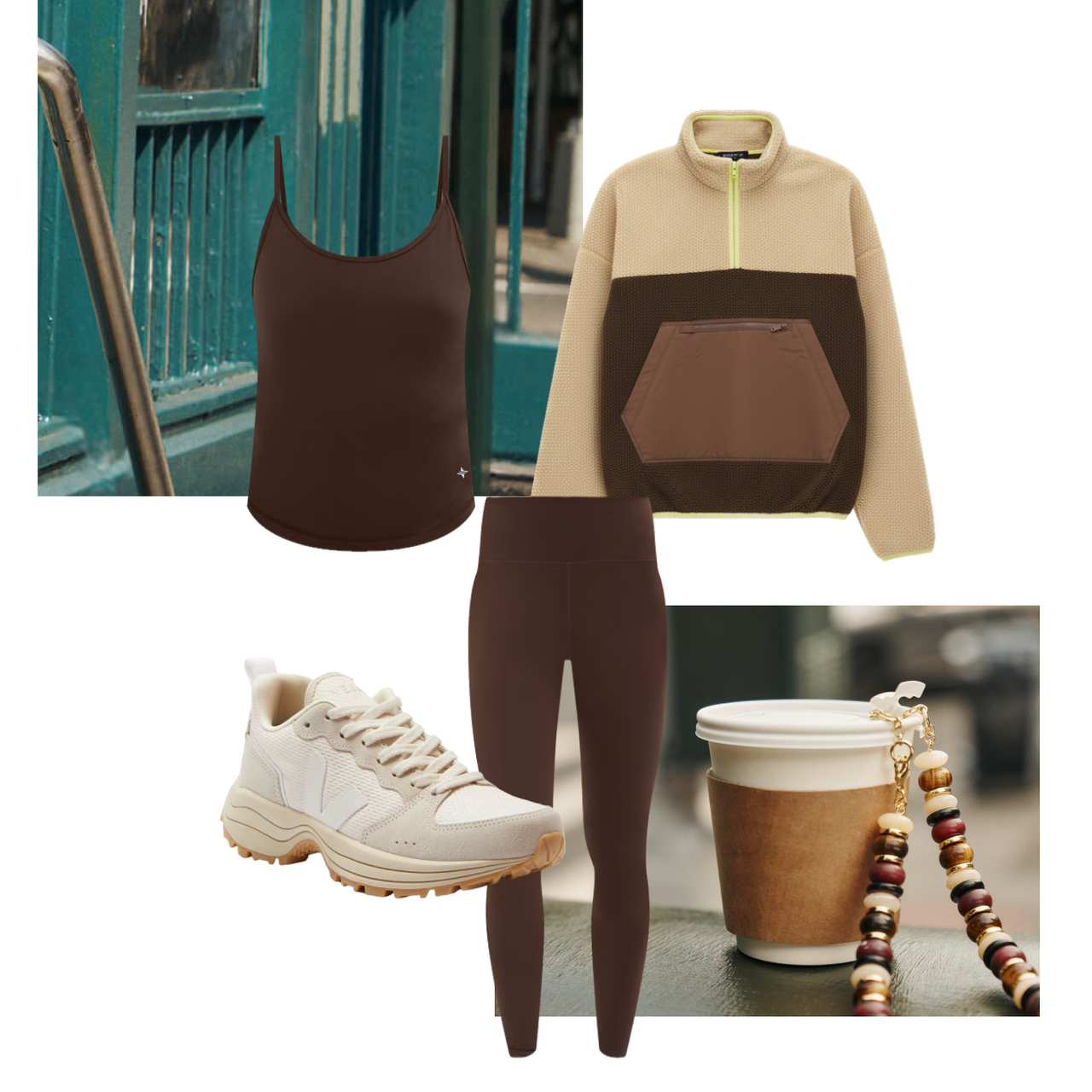 Grab a matcha at The Elk, then power walk or run along the West Side Highway for scenic views of the Hudson River. A monochromatic workout set keeps you comfortable and polished all at once.