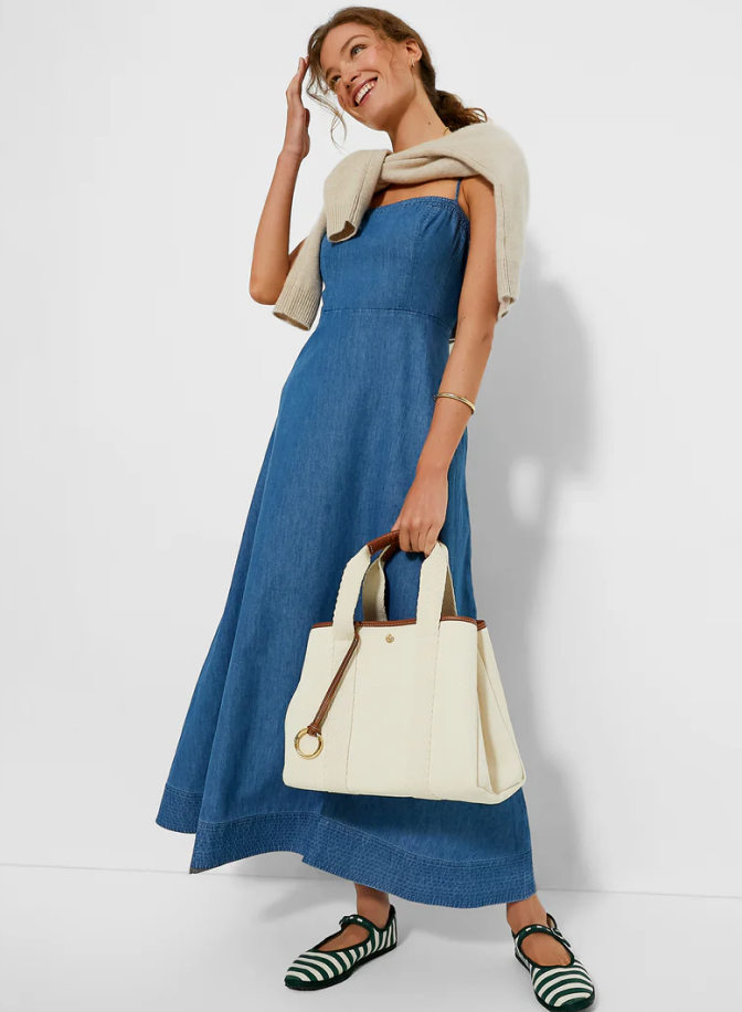 If you’re headed to Coachella to hear the hottest hits from your favorite artists, make sure you’re in a comfortable maxi dress in a durable material. The Rhea dress is a tried-and-true staple in your closet. It’s in the softest shade of denim and incredibly flattering.