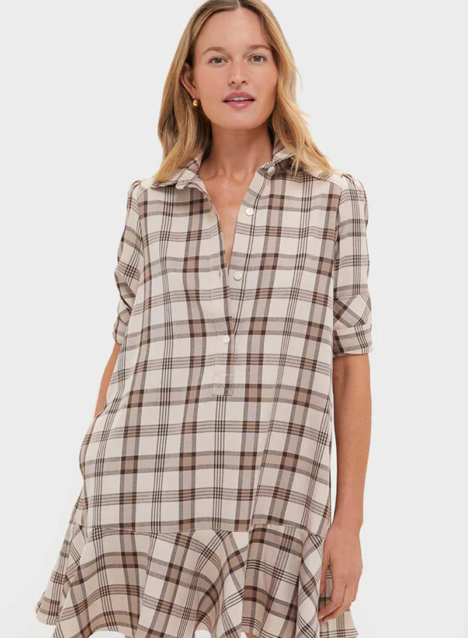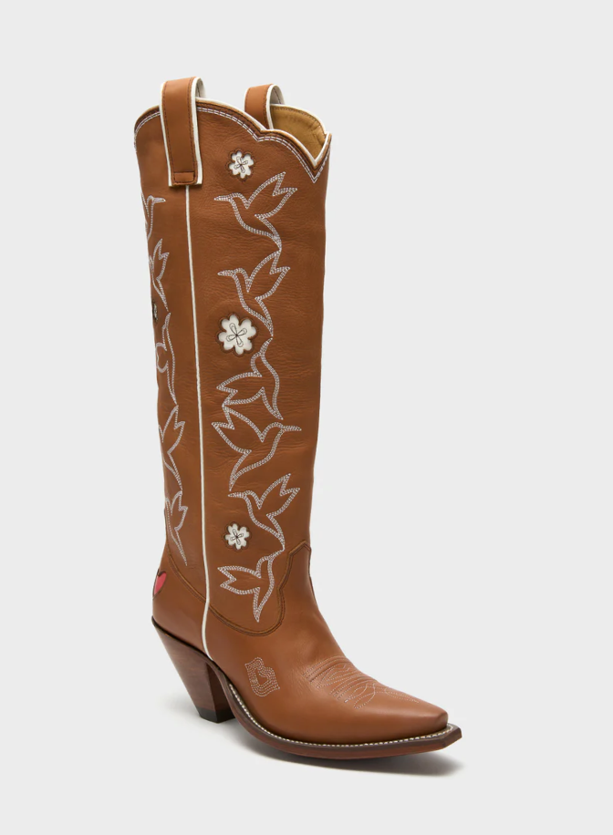 It’s all about layering for a stadium look, so wear a cashmere cardigan that you can put on over your dress or tie around your waist, depending on if it’s hot or cold. The shorter length of this dress plays well with a taller boot. Don’t be kitschy—stick to tasteful accessories.