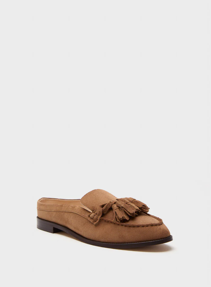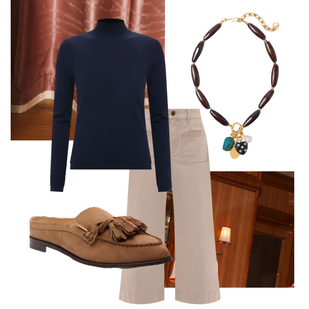 As a mother of two theatrical boys, Cynthia’s favorite school outfit is a chino pant and a casual moccasin slide dressed up with a statement necklace. She can move around and pick up her kids, while still feeling put-together.