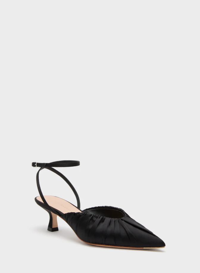 Don’t be afraid to wear all black while attending a jazz show. Cynthia loves a head-to-toe black moment, especially with a satin kitten heel. Slick back your hair in a low bun and keep your makeup natural with a stained lip.