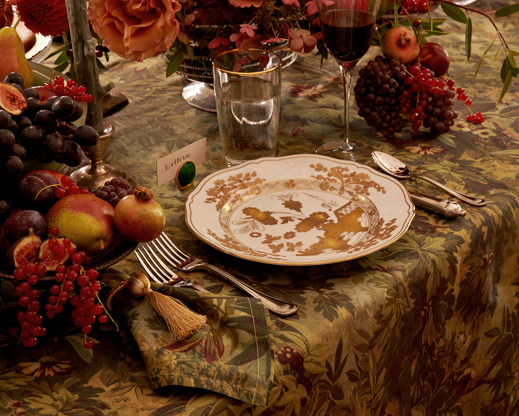 Autumnal tones, lush linens, and gilded details.