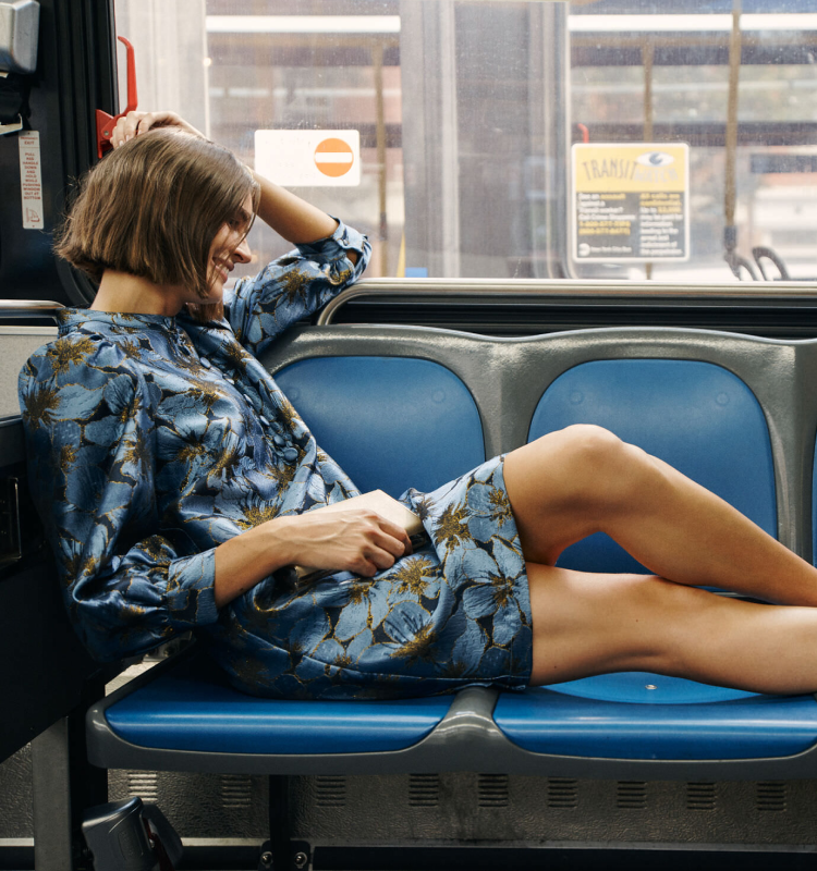 We can’t get enough of the shirt dress—or this transitional print, which can be styled for day or night.