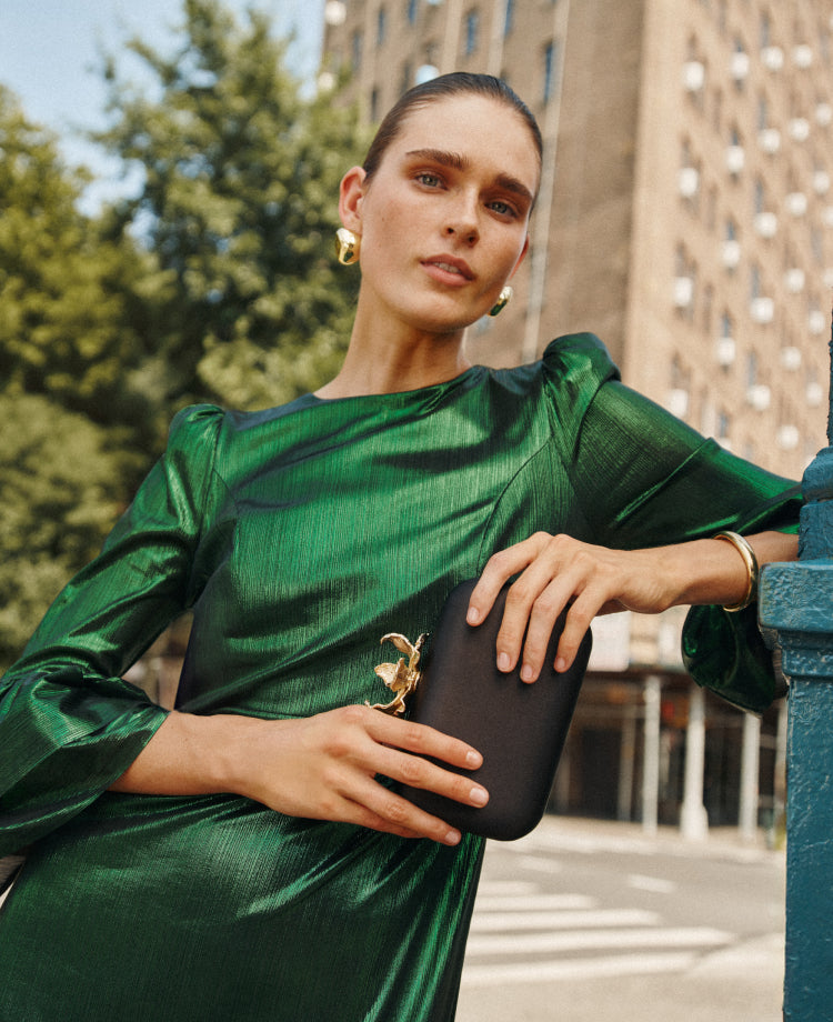Some nights call for pulling out all the stops, and this shiny emerald maxi is a party dress that fits the occasion.