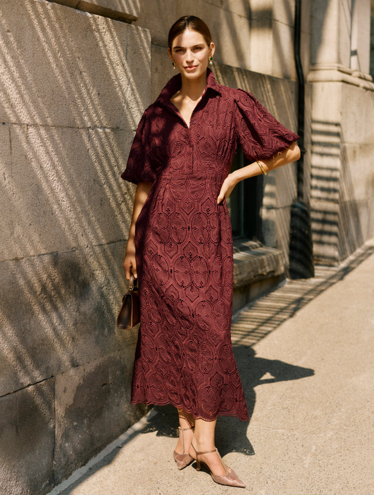 Dramatic sleeves, a cinched waist, and embroidered details make this dress your ticket to every soirée.