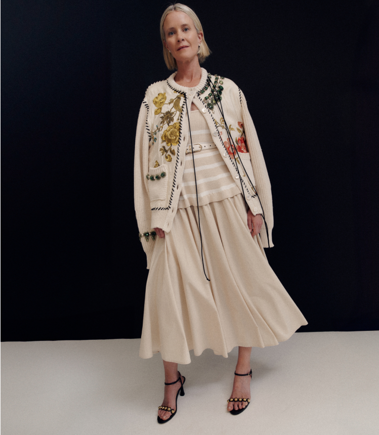 “I’m so excited to be carrying ERDEM on Tuckernuck, and this cardigan-meets-jacket makes such a stunning statement. Intricately embroidered and dripping with crystals, it feels totally glam but still works for day or night.”