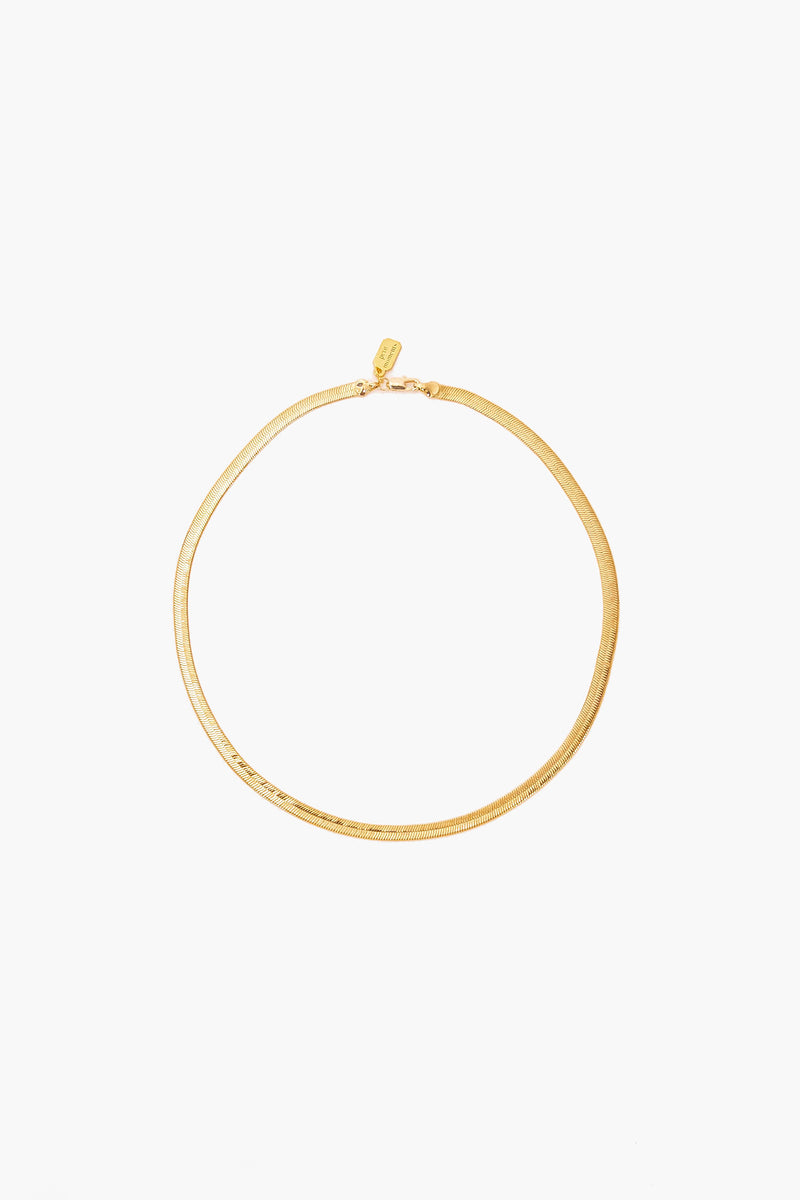 The Cher is a beautiful gold herringbone style chain. Ideal for layering multiple gold necklaces, you will wear this with everything from feminine blouses to dresses.