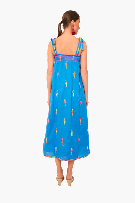 The Africa Blue Hot Lips Dress has a bohemian silhouette with a colorful, beachy motif. This midi features adjustable tie shoulders, a smocked bodice, and flowy A-line skirt. Throw over a swimsuit to go from beach to date night!