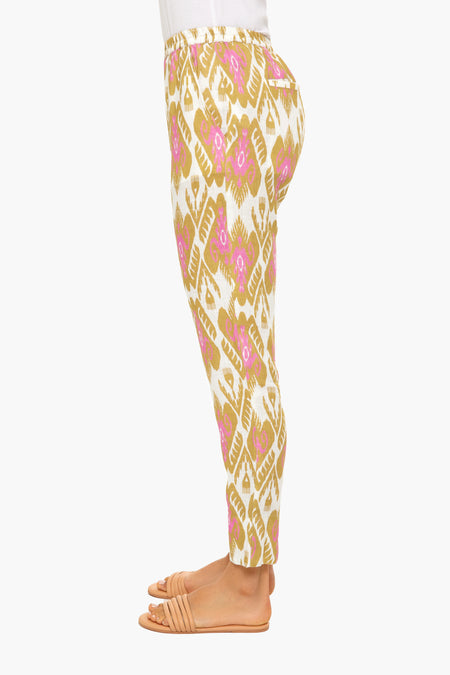 Made from lightweight linen, the Amber Pants are bright, breathable, and vacation-ready. With an elasticated waist, slim leg, and side pockets, we are wearing these for all of our adventures. Pair with a tee and statement earrings for an easy, sunseeker look.