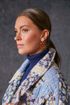 The Amber Tile Earrings are made from gold-plated brass with quartz rectangles set with faceted pink rhodolite stones. This drop style is elegant and simple with a splash of color. Pair with a luxe coat and boots for dinner al fresco with friends or a cocktail dress for a holiday party.
