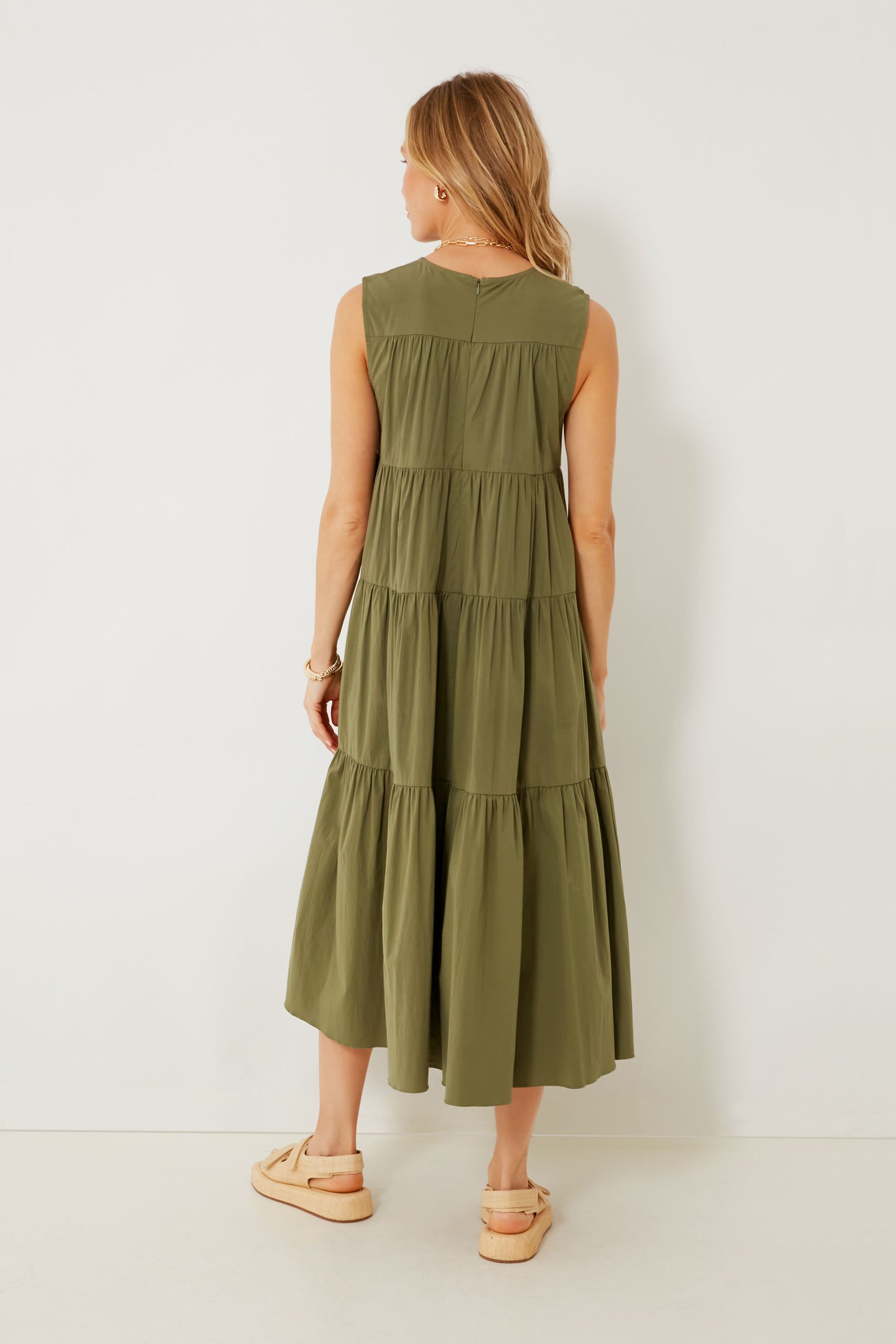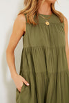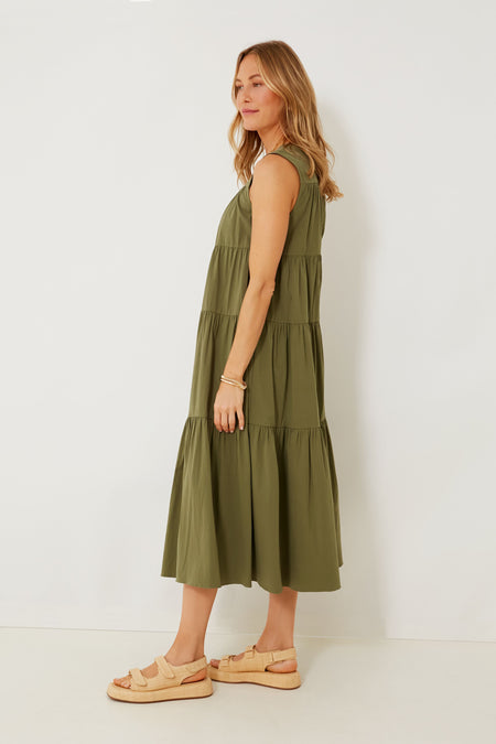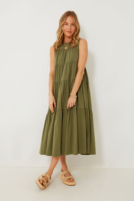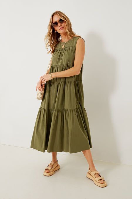 Polished and lightweight, we will be living in the Carmen Dress all summer long. In an army green hue that's easy to wear, this floaty style features a tiered body and the perfect maxi length to show off your favorite shoes. The definition of throw-on-and-go, just add sunnies and gold accessories for everything from summer camp drop-offs to spontaneous happy hours!