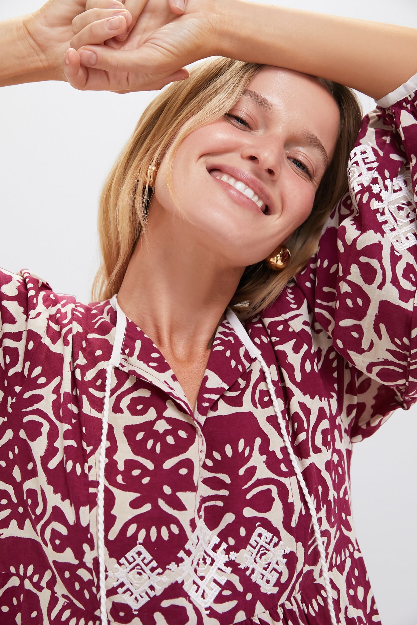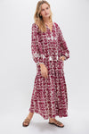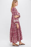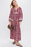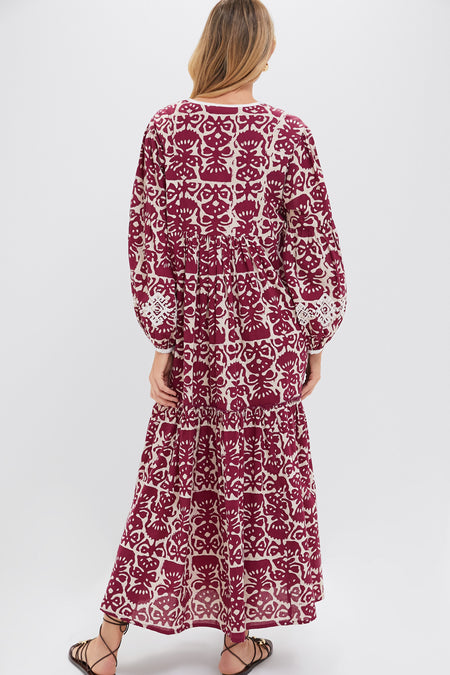 Adorned with a beautiful print that elevates this Aubergine Sannar Dress to new heights, this maxi's split neckline, blouson sleeves, and relaxed A-line silhouette all come together to create a boho-chic styling that's perfect for beach days and warm getaways alike. Pair with sandals and a sunhat to chill poolside or with a tote bag and sunnies for all kinds of weekend adventures.