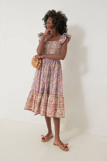Effortless enough for everywhere-wear, the Avignon Floral Olympia Dress has a fresh print we are loving and an elevated version of a classic silhouette. The square neckline allows you to accessorize with a necklace or two, the layered ruffle sleeves bring an eye-catching element of volume, a smocked bodice provides ultimate comfort, and a tiered skirt makes it light and breezy — in other words, you're going to obsess over this midi. Style with sandals and sunnies for casual weekend looks, or with heels and gold jewelry for dinner parties or celebrations this season!