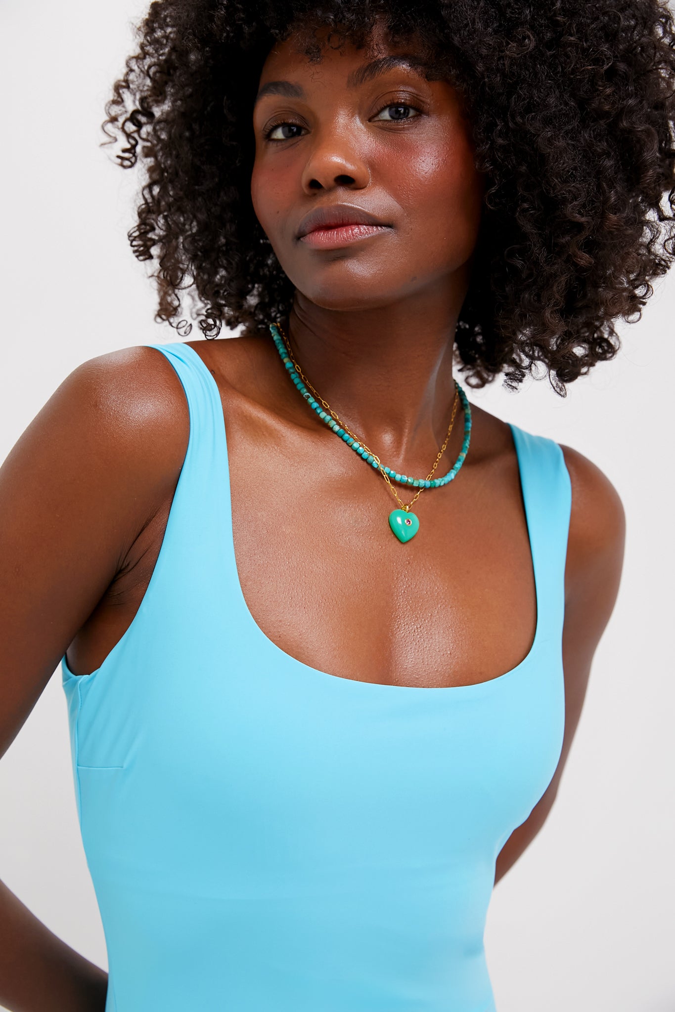 The Azure Blue Dreamsculpt One Piece is an ultra-flattering, square neck swimsuit that is designed to hug your body for a supportive, comfortable fit. Perfect for days spent by the water, we are pairing it with a sarong and sun hat for a chic beachside look!