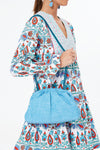 One of the brand's most coveted styles, the Game Clutch is perfect for all seasons. Featuring a hand-woven weave in a blue raffia straw reminiscent of the ocean, this bag is a vacation go-to. With a shoulder strap that can be tucked in and a functional size so you won't have to leave your lipgloss behind, this versatile number is as practical as it is fun. Pair it with a boho-inspired mini for a seaside dinner, or with white denim and strappy sandals for happy hour.