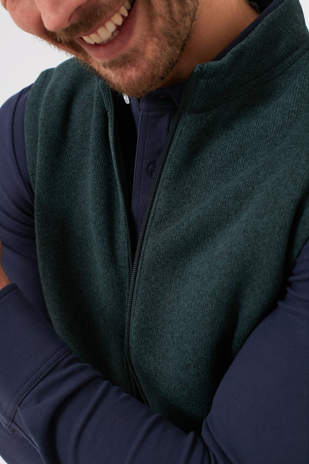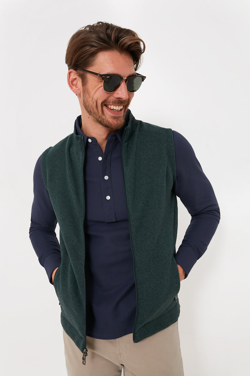 Classic fleece comfort meets versatile design in this full-zip Crown Sweater Fleece Vest by Peter Millar. Made from incredibly soft recycled performance fabric, it offers lightweight warmth in cool weather. A three-color mélange design provides a unique aesthetic.