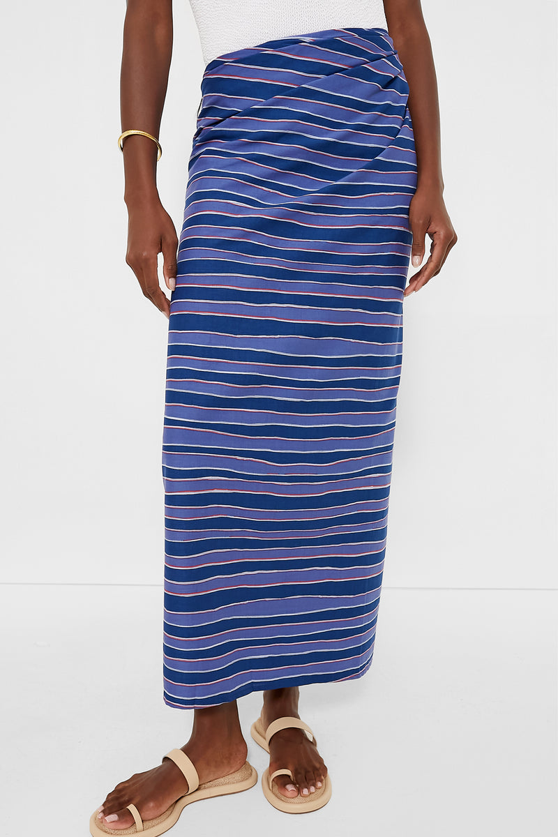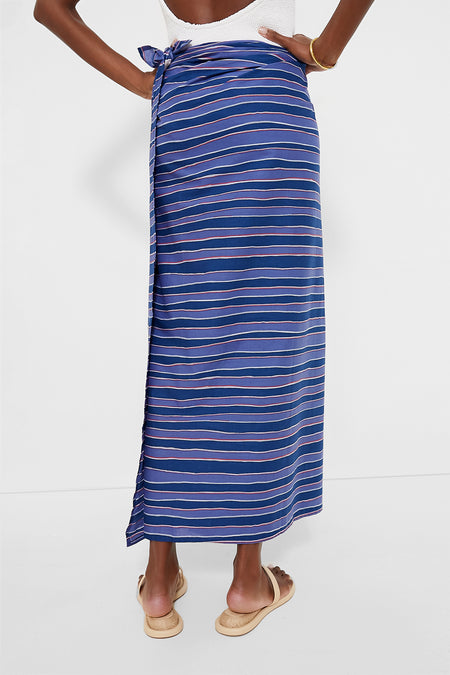 Add an elevated element to your beachside look with the Batik Stripe Navy Sarong. This chic accessory is made from a soft cotton with a self-tie closure, for comfortable and adjustable fit. Pair over a bathing suit with sandals and a sun hat for a day of fun in the sun!