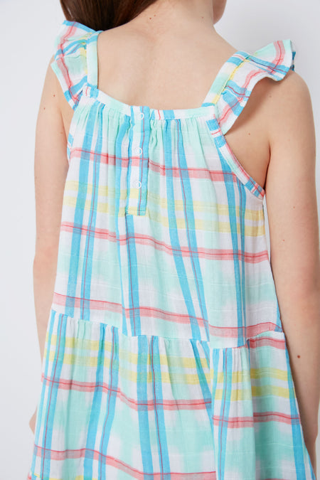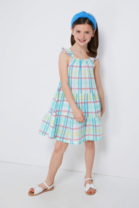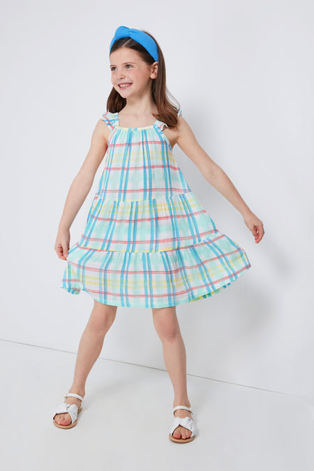 The Beach Twirly Sundress is your solution to getting the kids ready in a jiff! Designed with a loose fit that's perfect for those hot summer days, this plaid number features flutter detailing at the straps and tiered skirt. Dressy enough for family photos but comfortable enough to run around in, we're sure you're kiddo will last all day in this dress.