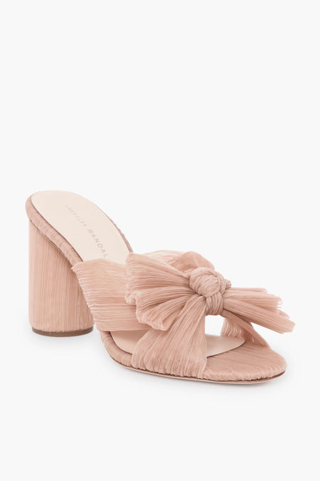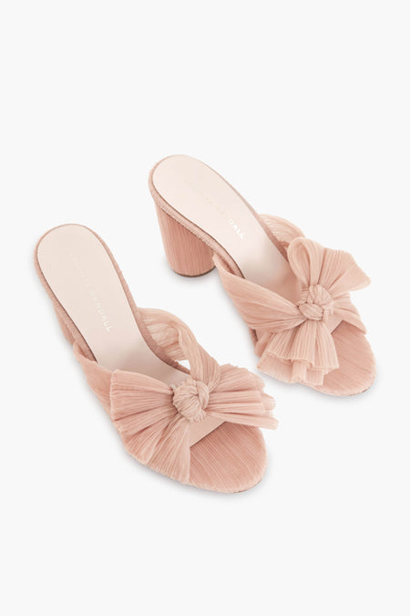 The Beauty Organza Penny Knot Mules are an effortless yet elevated shoe for any occasion. These blush pink statement heels can be paired with cropped denim for a city chic look or a dress for a special event! Featuring a signature knotted bow in pleated organza, these will instantly transform any outfit.
