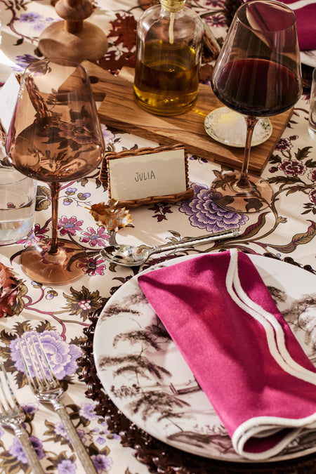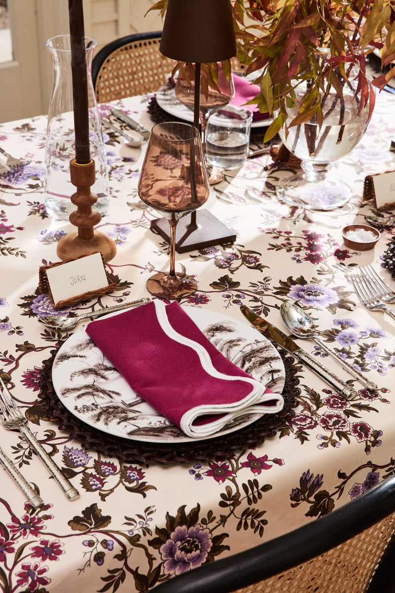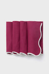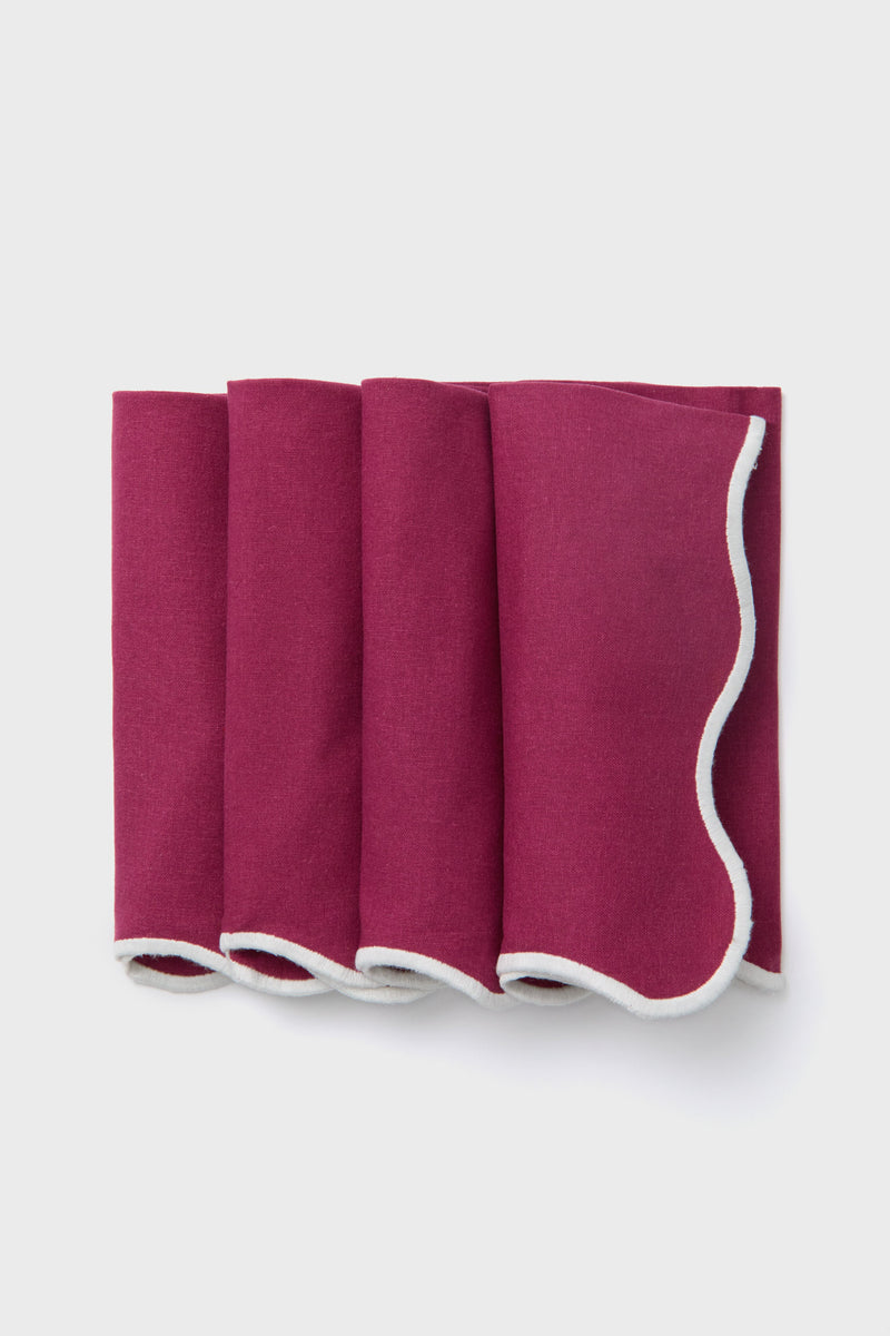 Simple yet sophisticated at first glance while filled with understated details, these Scalloped Napkins will add a touch of fun and flare to your tabletop. Contrast thread along the curvy edges plays the part while the smooth solid hue of the napkin crafts the perfect canvas waiting to be topped with your custom monogram. From family dinners to special celebrations, pair with solid or prints for a fresh and eye-catching look and feel.