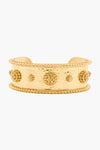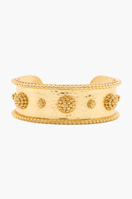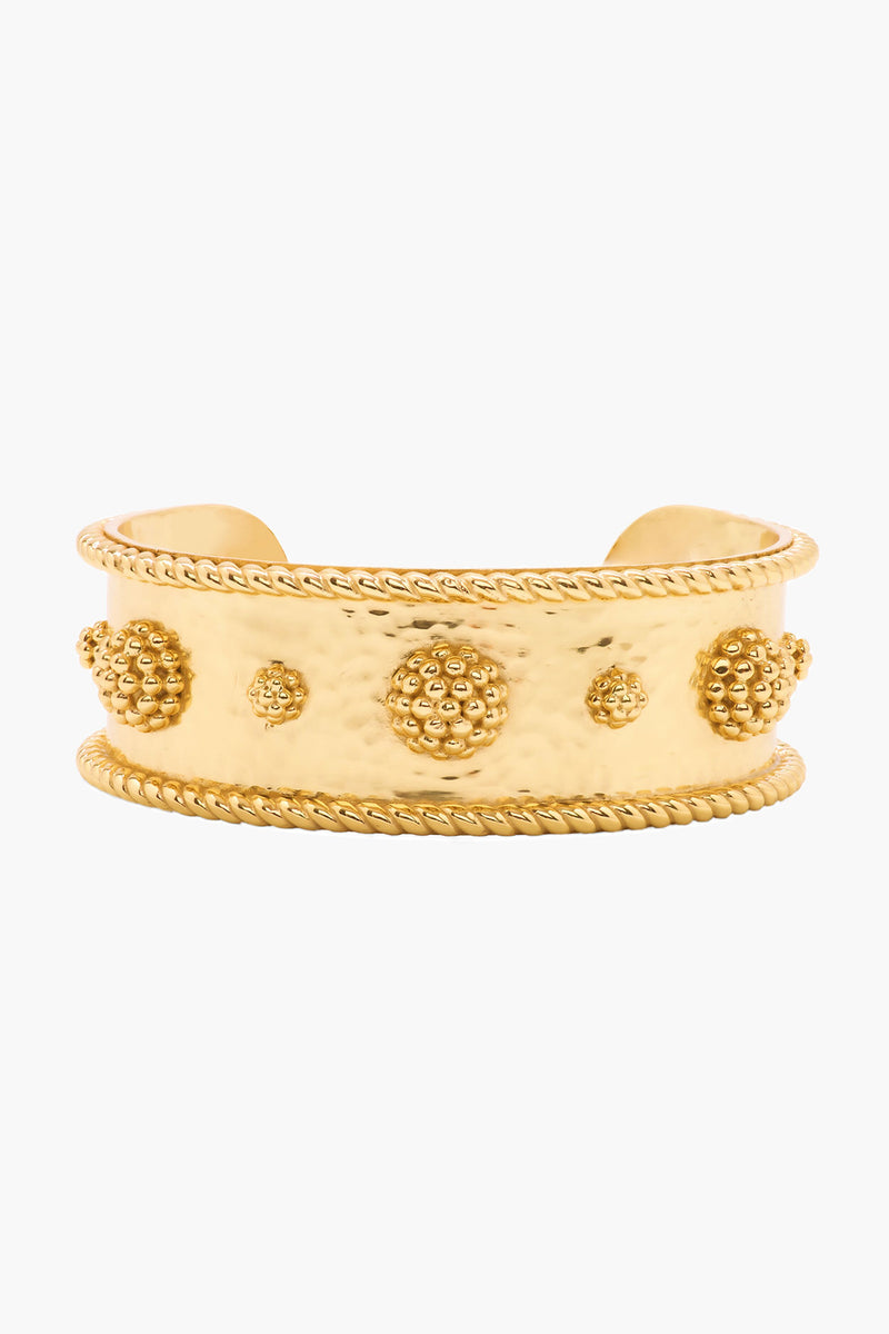 Clean and classic, bold and gold, the Berry Cuff is a staple statement piece that goes with absolutely everything, from cozy sweater to breezy caftan to cocktail dress. We especially adore that prim little line of berries and golden rope trim that pulls everything together with a subtle feminine flourish. Lovely for layering or wear as is with a formal maxi and you're ready to roll for any event on your social calendar!