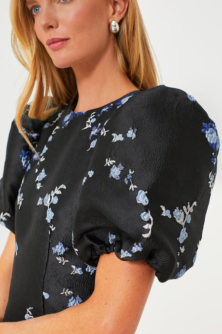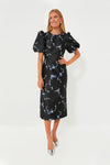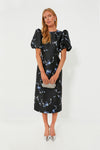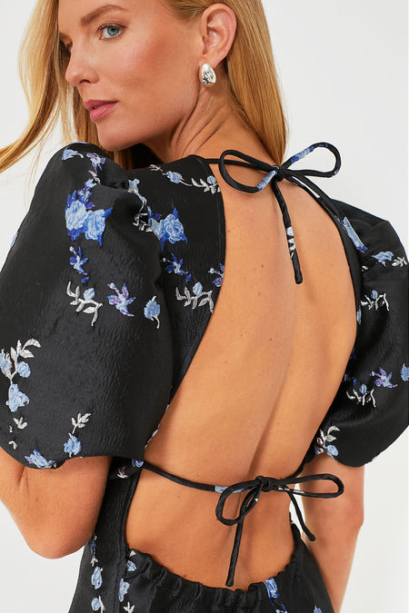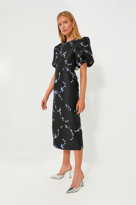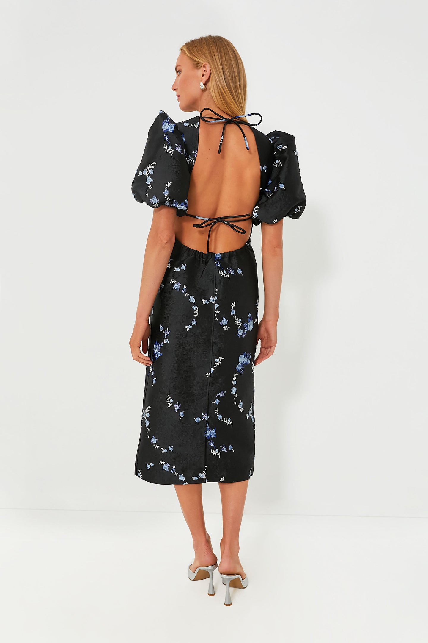 Perfect for your next RSVP, the Black 3D Jacquard Midi Dress boasts beautiful brocade florals on a slim-fitting silhouette. We love the chic puff sleeves and the stunning open back with ties for an unexpected wow factor that's sure to dazzle the crowd. Style with heels and a handbag for an unforgettable ensemble perfect for anything from sparkling soirees to evening events.