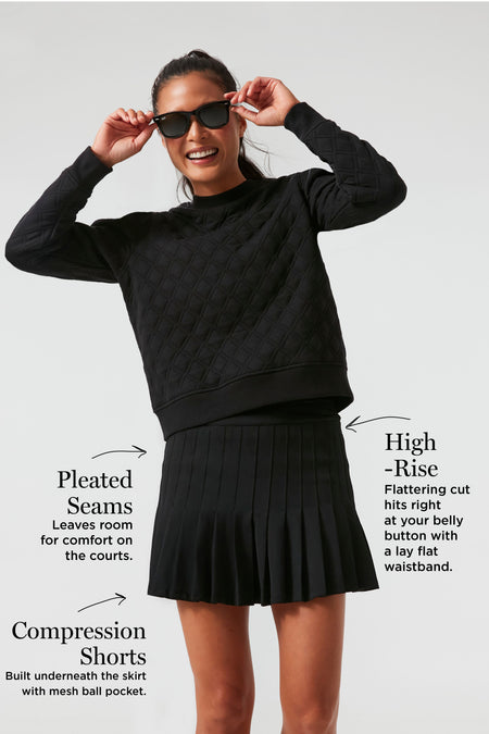 Be the most stylish on the court in the 15 Inch Williams Tennis Skirt. With a mini length, pleated seams, and interior pockets, you can train in the morning with your tennis coach or walk the street’s with friend’s.