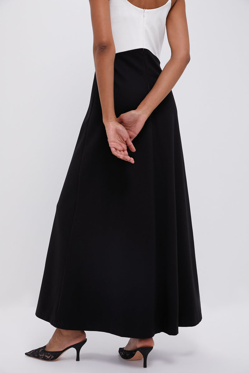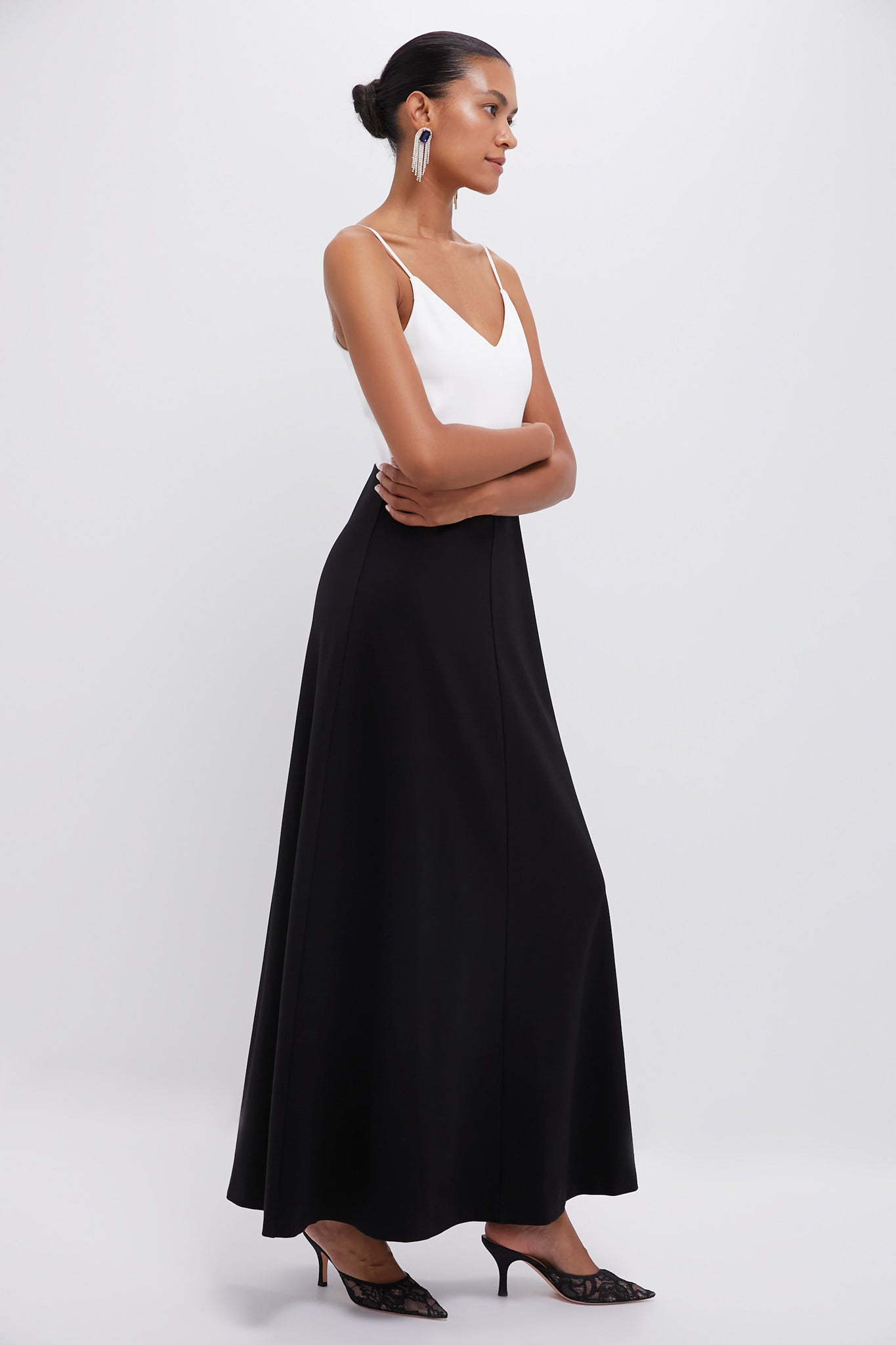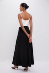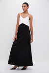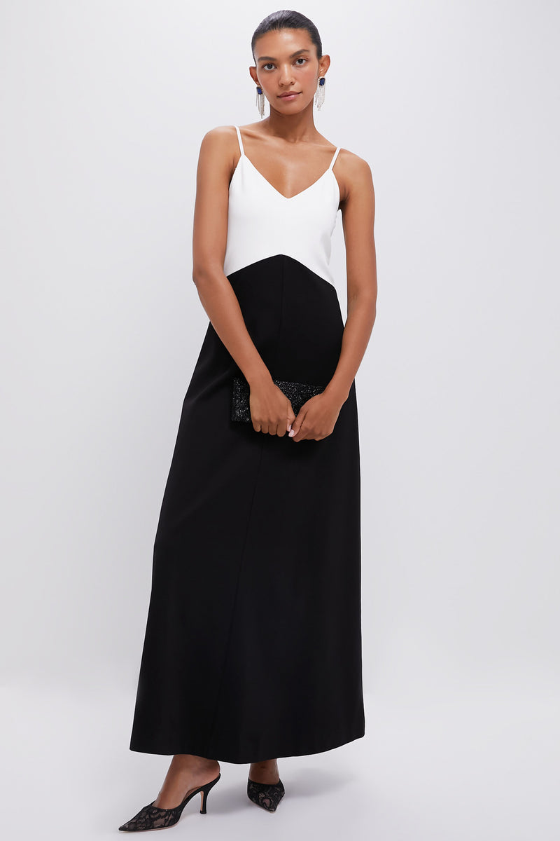 The Lorelai Dress is a chic, minimalistic maxi that boasts a flattering V-neckline and angled waist seam. Perfect for galas and special events, we are pairing it with sleek heels and gold jewelry for a graceful look.