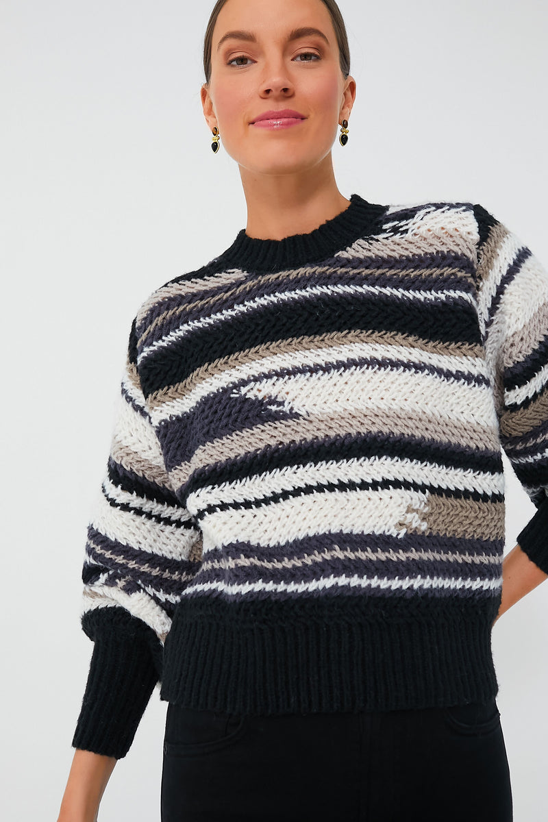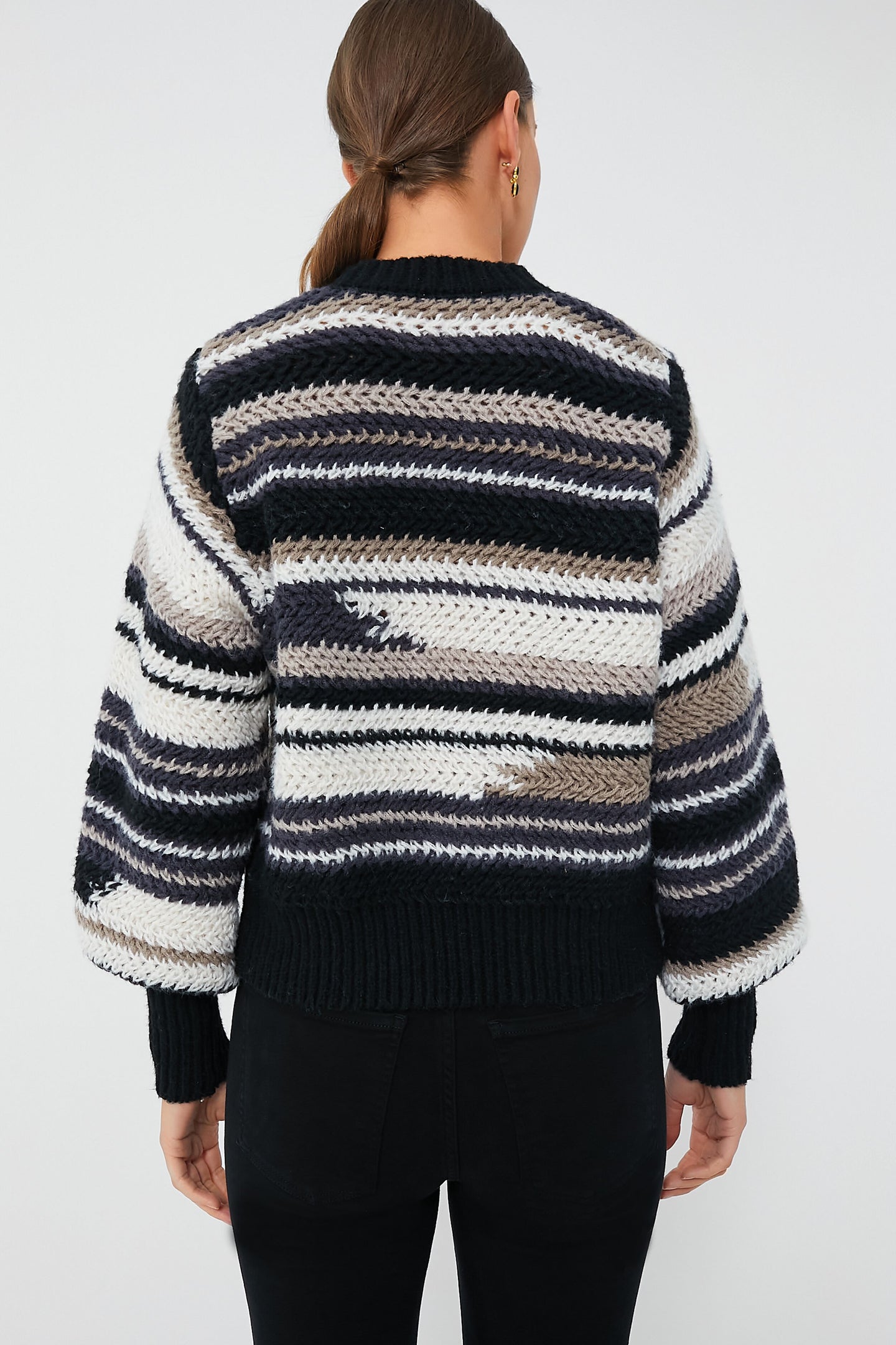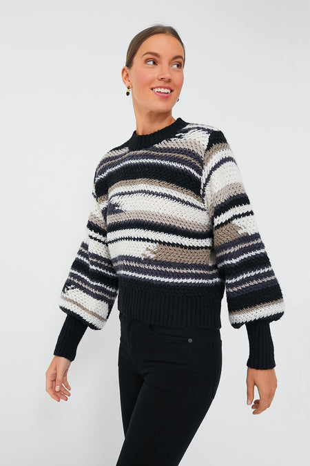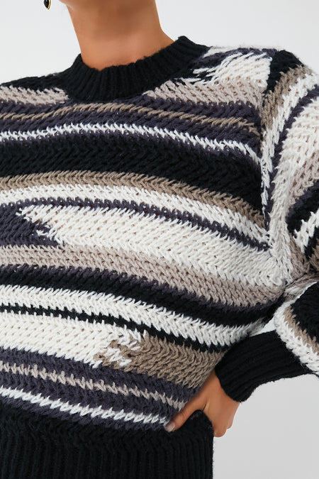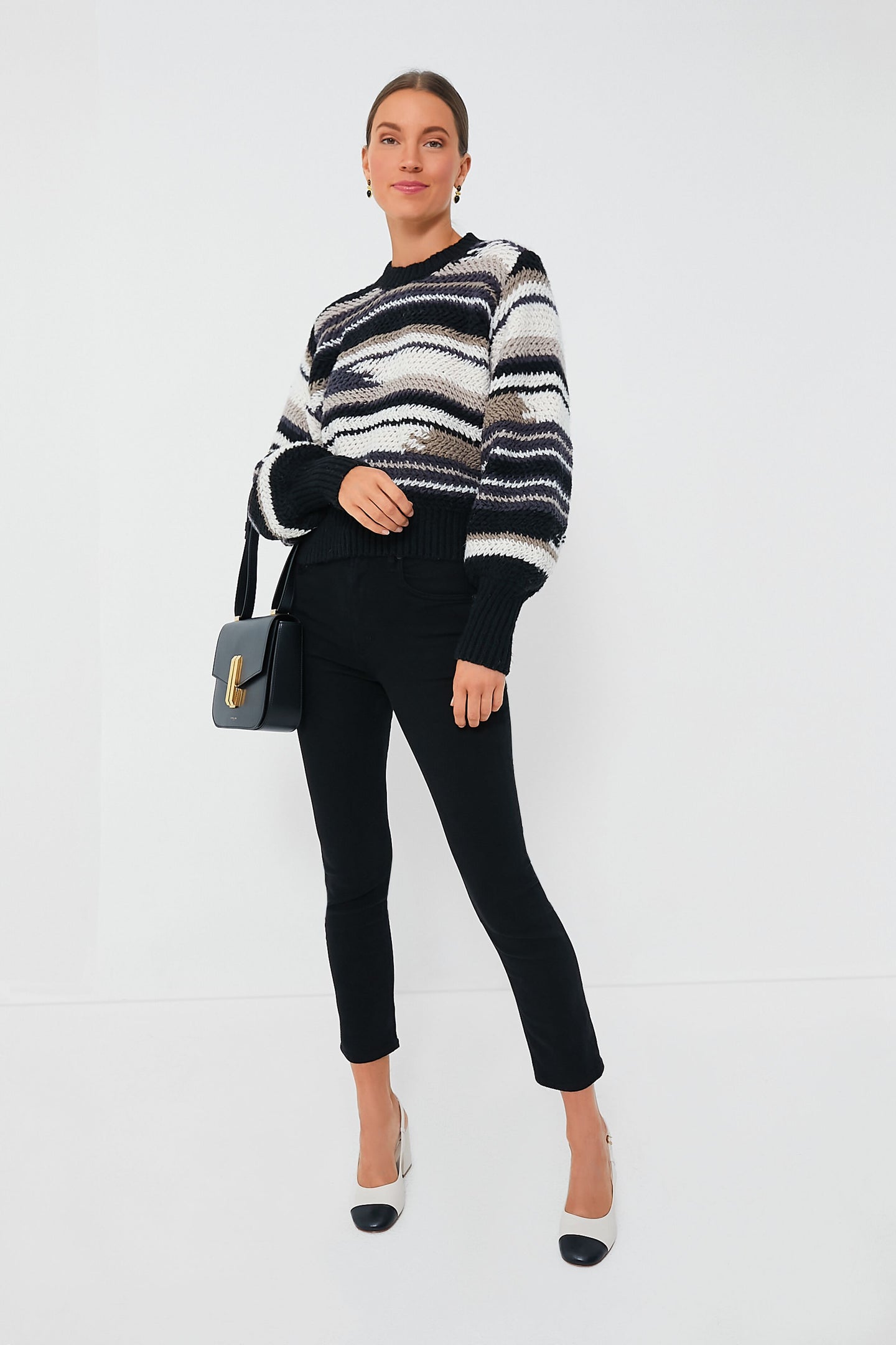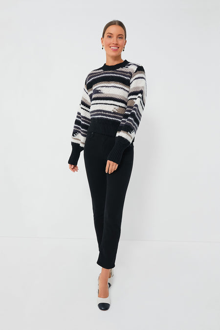 Wrap yourself in warmth and style with the Black Asheville Stripe Sweater. Crafted from a luxuriously soft yarn in marled colors to give a uniquely patterned effect, this cozy knit features a classic round neckline and long bishop sleeves for a touch of dimension. Sure to be a hit this season, we love pairing it with classic denim and boots for an elevated everyday look, or with leather leggings and heels to dress things up for date night.