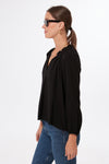 The Black Camille Top features a simple design in a lightweight, comfortable gauzy material. With a ruffled collar and V-neckline, shirring throughout, and airy blouson sleeves, this blouse is definitely going to become one of your favorite go-to basics. We love how this effortless silhouette looks tucked into denim, and we are adding gold necklaces and ballet flats to complete our off-duty cool girl look.