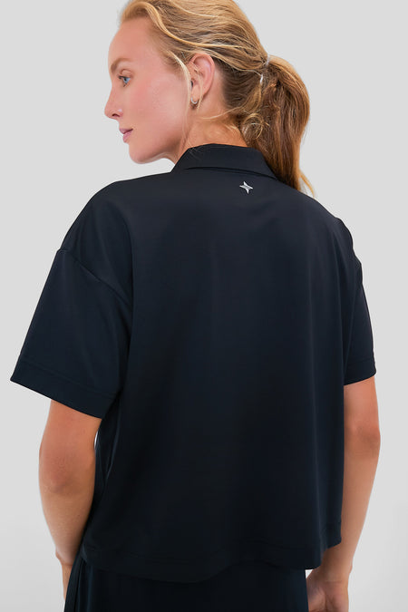 The Black Cropped Caroline Polo is this season's everyday staple. Wear with a tennis skirt and you’re set for practice or with a pair of denim shorts for a quick run to the grocery store.
