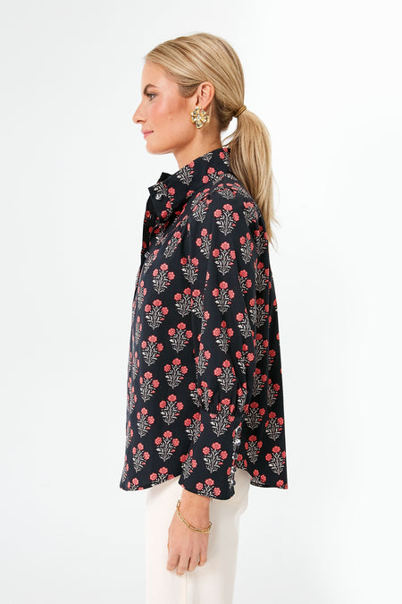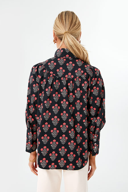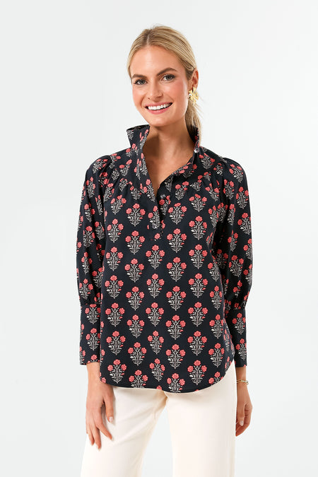 The Black Dahlia Corrigan Blouse is decorated in pink floral motifs for the perfect fall to winter to spring transition. This updated classic features a stand collar with a three-quarter length button front placket and long cuffed sleeves for a chic, modern look. We love wearing this for an easy desk to drinks look, swapping from flats to heels and adding gold accessories for a dash of subtle glam.