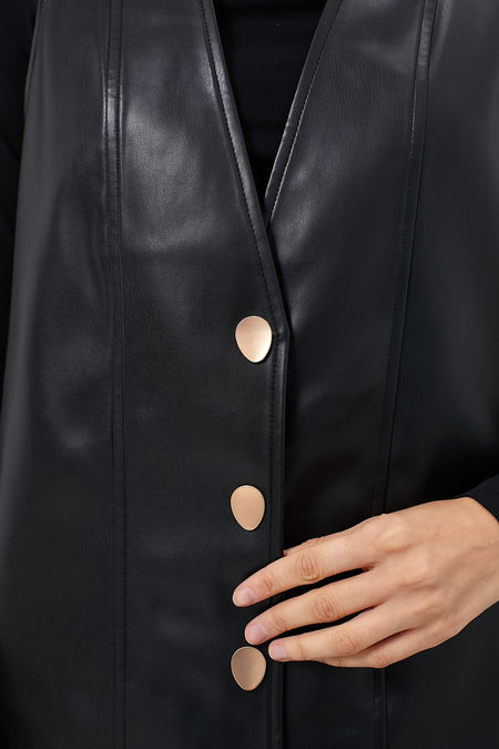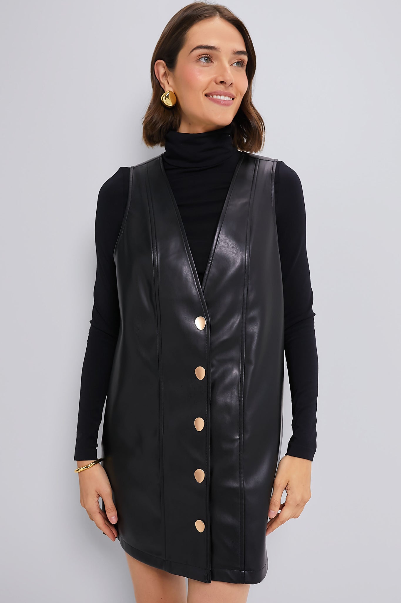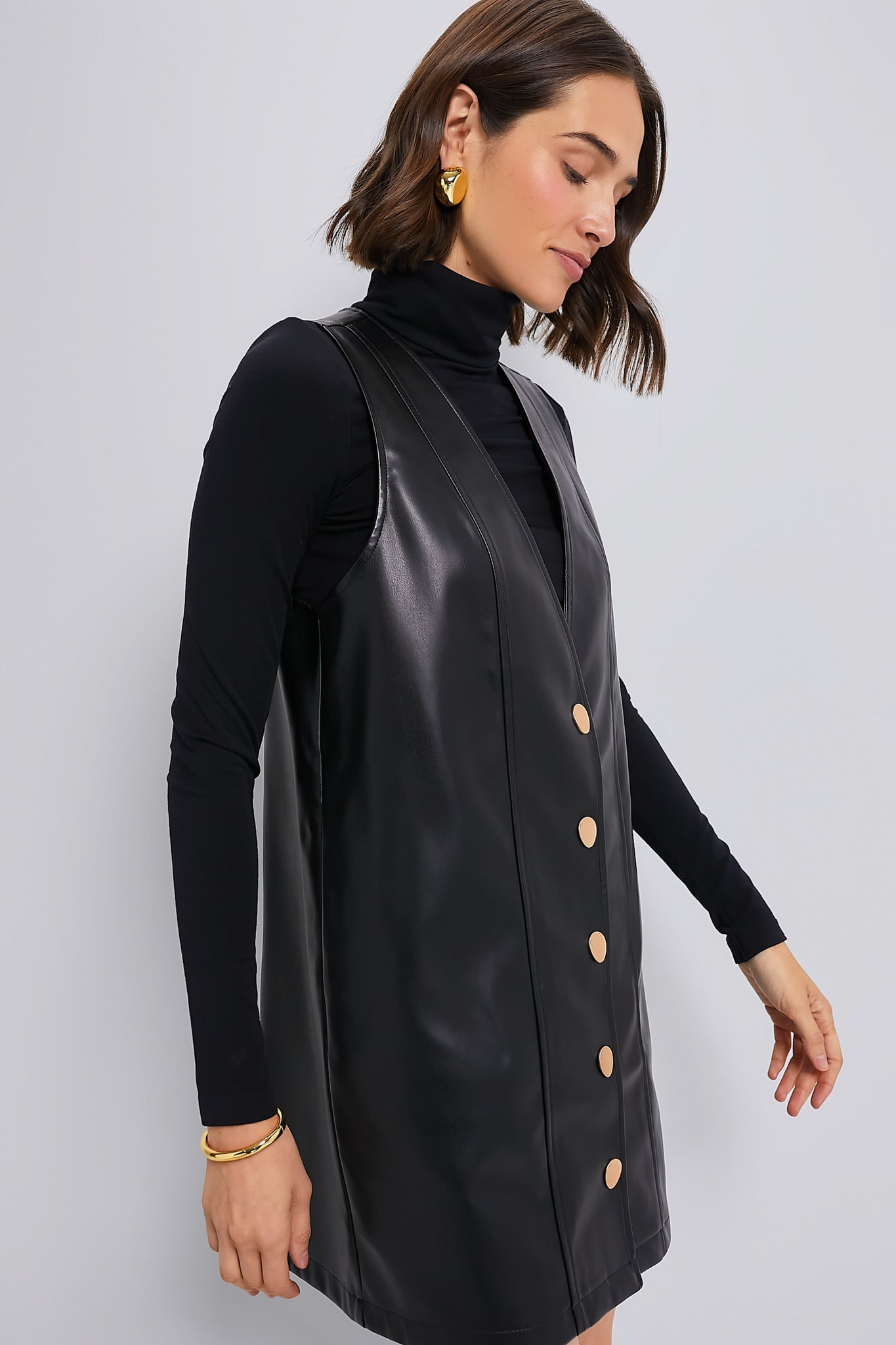 A classic shift silhouette crafted from a luxe vegan leather, the Pinafore Dress is sure to be worn on repeat. Perfect for when the temperatures drop, we're wearing this black number with a floral blouse and knee high boots for date nights, family gatherings, and everything in between. Or go bold and wear with gold heels and jewelry for a looks sure to turn heads!