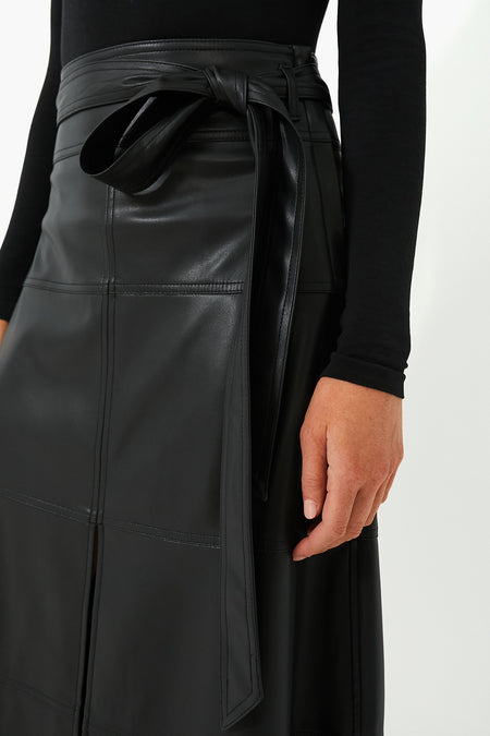 Crafted from a soft vegan leather, the Black Hudson Skirt is a staple separate for the season. Perfect to add to your wardrobe for a refresh, this high-waisted A-line silhouette features an optional self-tie belt for versatility of wear, and statement seam details for a unique touch. Style this chic piece with a chunky knit and tonal boots to wander around a new city, and add heels and gold jewelry to take your look from day to night.