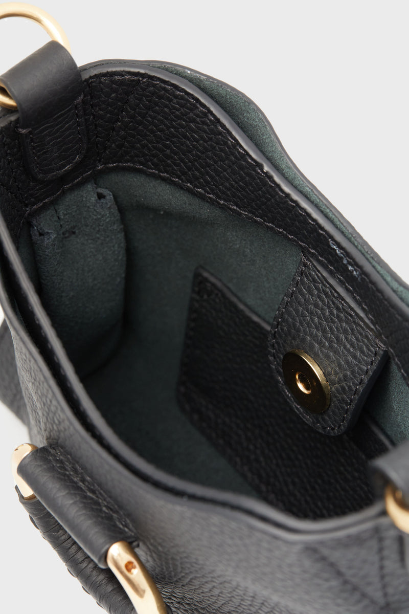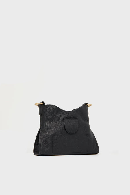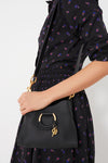 Effortless cool-girl status is achieved with the Black Joan Bag. Crafted from grained goatskin, this chic top handle purse with an optional crossbody strap features a magnetic snap closure, gold-toned hardware, and the brand's signature braided O-ring detail. Perfect for everything from errand-filled days to girls night out, this bag is one you’ll be reaching for season after season.