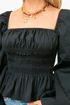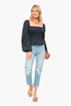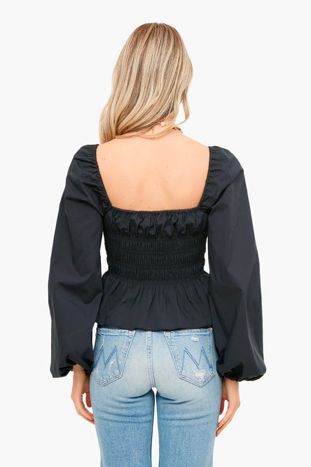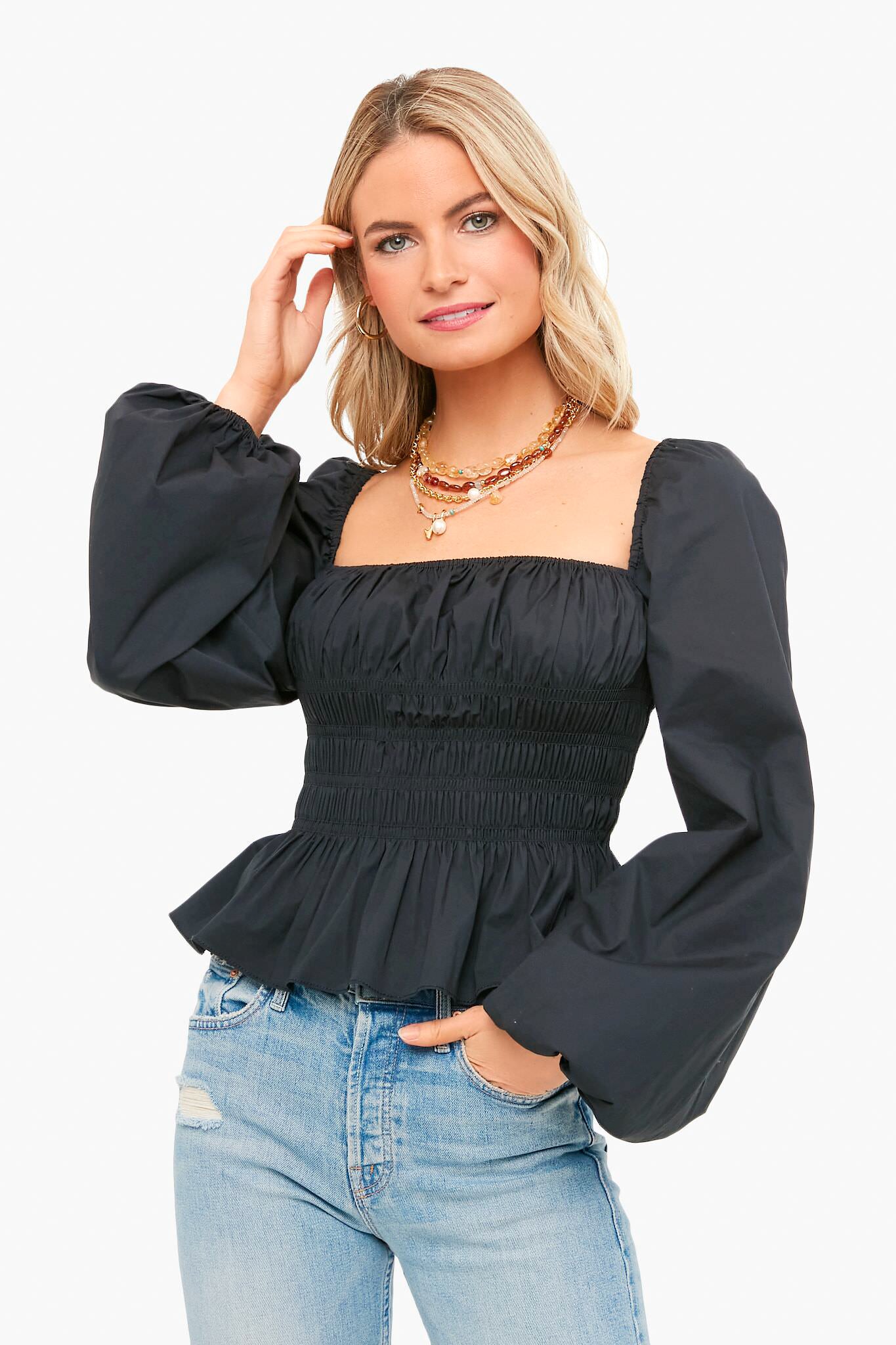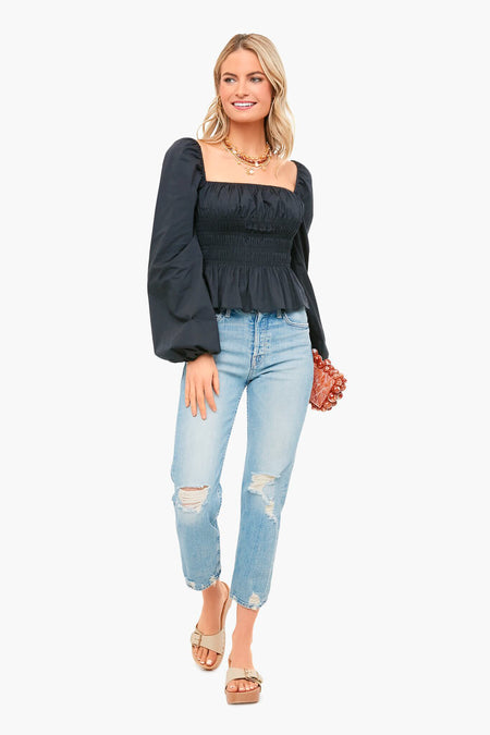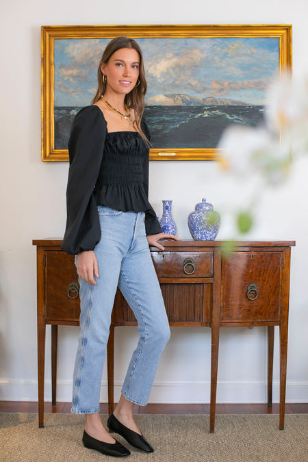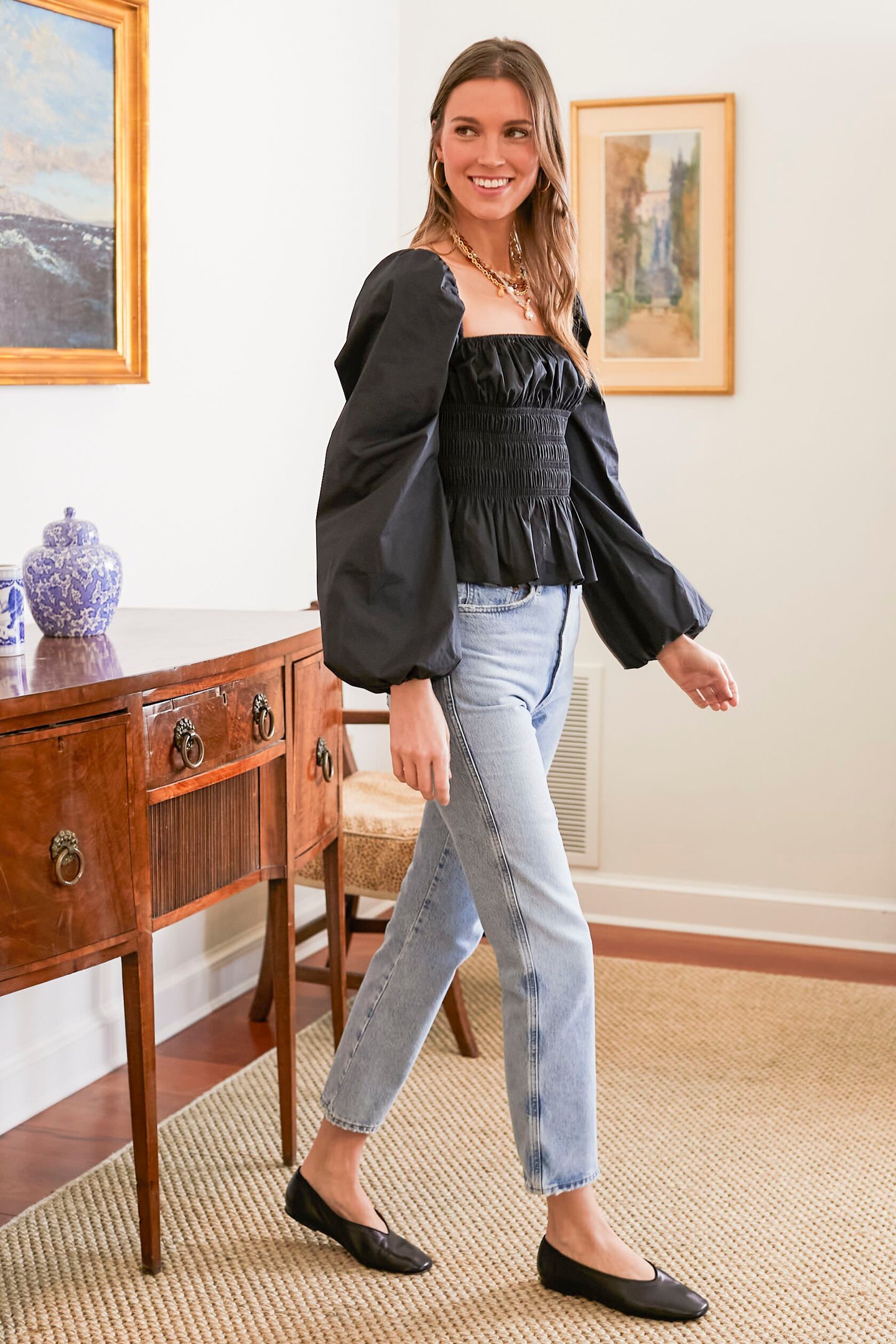 The Jules Blouse is made from cotton-blend poplin with a squared neckline framed with a smocked bodice and voluminous balloon sleeves. Its flattering, flirty and of-the-moment silhouette makes it perfect for dinner with the gals or a special date night. Pair with straight leg denim and gold hoops for a cool-girl chic look.