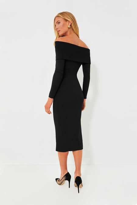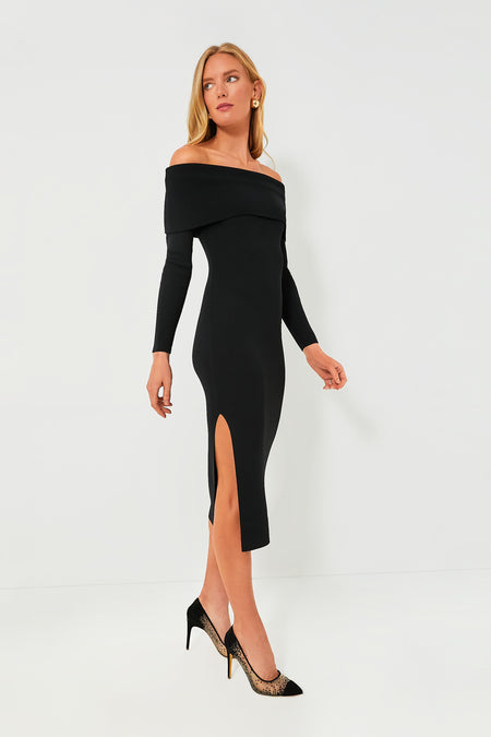 Classic and modern, the Black Justine Maxi Dress is sure to get you noticed. Made from a ribbed stretch fabric for a perfect fit, it features a fold-over neckline, long sleeves and a side slit making it chic yet comfortable. Throw on your party shoes, add some statement earrings, and you're ready for a night to remember.