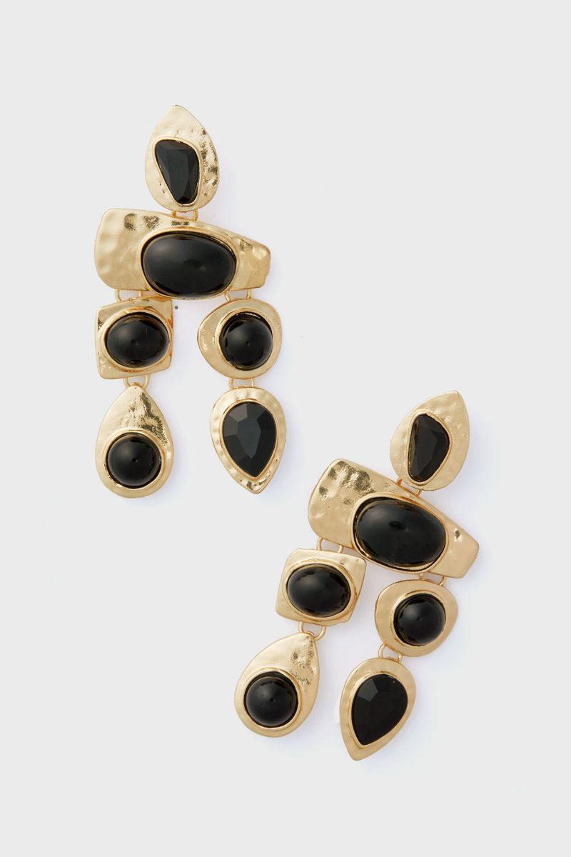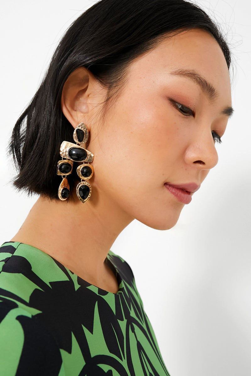 The Black Multi Stone Earrings are little masterpieces! A shimmering cascade of resin stones set in a beautiful gold-plated drop silhouette brings mod-art style to life with eclectic charm. Pair with a crisp white button-down and your favorite denim for an elevated office look, or dress them up with a LBD and glitzy heels for a fun night out.