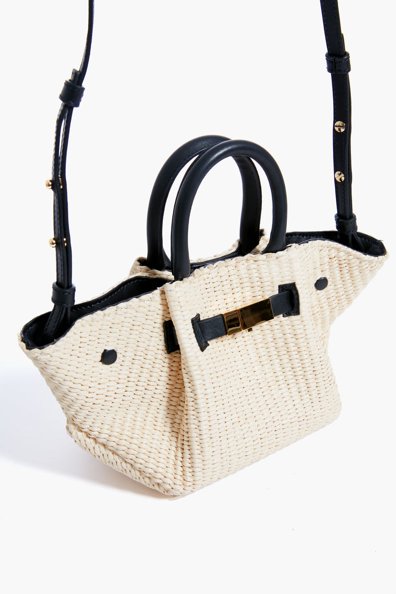 The Black Natural Mini New York Bag is a modern yet timeless silhouette with a refreshing summer update from woven raffia. Crafted with a gold belted detail for an added luxurious feature, this purse is the perfect petite companion. It can be elegantly carried by hand or transformed into a practical crossbody by attaching the adjustable shoulder-strap. Style it with boho-chic sundresses or with white denim this season for an elevated warm weather look!