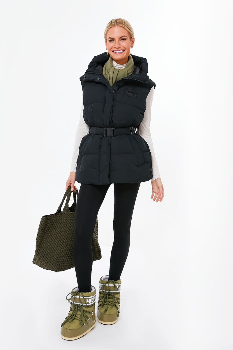 The Black Noir Rayla Vest is a multi-season staple that will keep you warm without feeling stuffy or constricted. Made from a luxe water-repellent fabric with a soft-to-the-touch finish, this transitional silhouette features a drawcord adjustable hood, an elasticated belt with a metal buckle to cinch in the waist, and is packed with cozy down to ensure you never let the weather get you down. Layer over your favorite fleece and add a beanie for a nature walk, or style with a turtleneck and boots to grab a latte from your favorite cafe.
