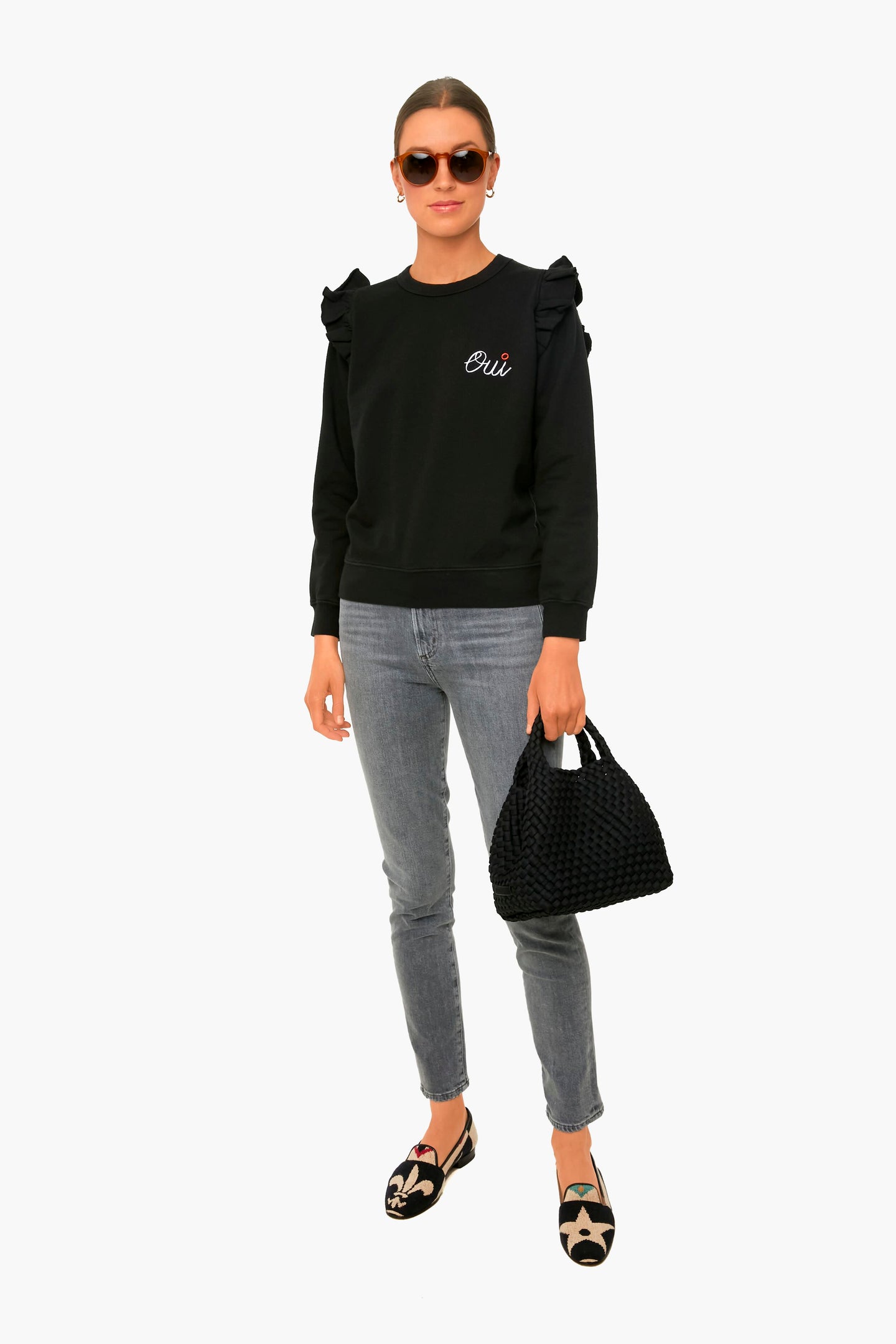 - Embroidered "Oui" on left chest