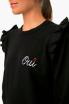"Oui" love the feminie details mixed with the sporty style in this Petit Ruffle Sweatshirt. Dress it down with denim and sneakers or tuck it into a sequin skirt for a fun play on an elevated look.