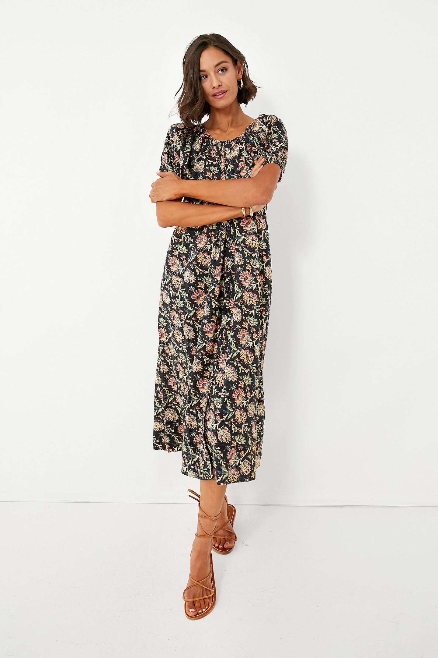 A bohemian take on the classic shirtdress silhouette, the Seascape Dress is crafted from a sun-softened cotton voile that has the lightweight texture that the season calls for. Featuring romantic short, puffed sleeves, a scooped neckline, and delicate buttons down the front, this flirty frock is complete with a removable, cummerbund-shaped belt to cinch the waist for a more tailored look. Wear it open as a beach coverup with a straw sunhat and tote, or dress it up with lace-up sandals and layered gold necklaces for evenings out.