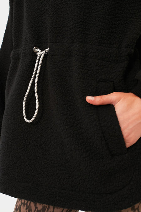 Meet the Black Parnel Half Zip Fleece: the ultimate in Alpine loungewear, effortlessly designed for layering over your base layers. Made from Varley's soft and insulating Plush Borg Fleece, this half-zip pullover is longline and oversized. Its adjustable toggle waist allows for a customized fit, complemented by the elegance of a sateen-trimmed half-zip and ribbed cuffs. Pair with leggings and boots for the ultimate cozy ensemble!
