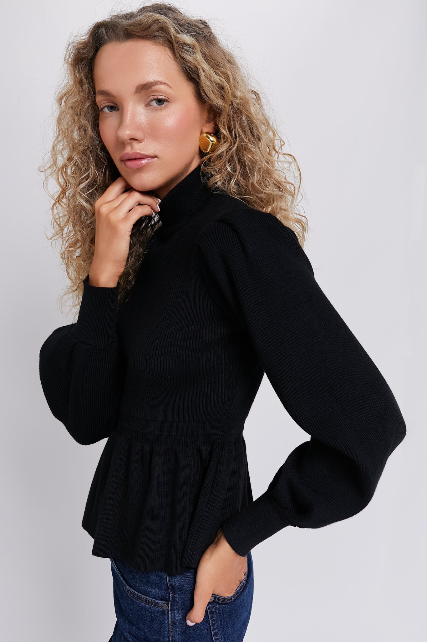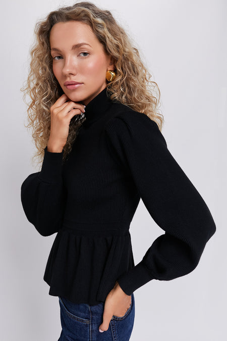 The Peggy Sweater allows you to be cozy and stylish with its cuffed balloon sleeves, mock neck, and peplum waistband. Perfect for cold-weather date nights and evenings out on the town, we are styling it with leather pants and boots or a mini skirt and heels!