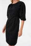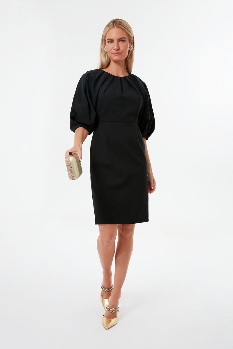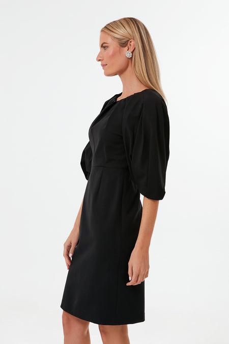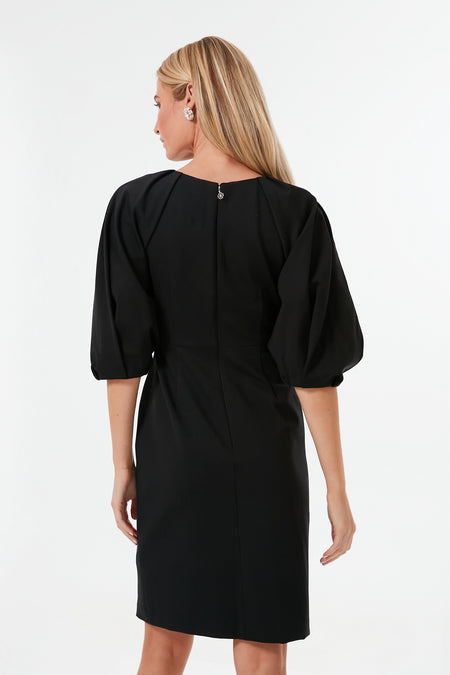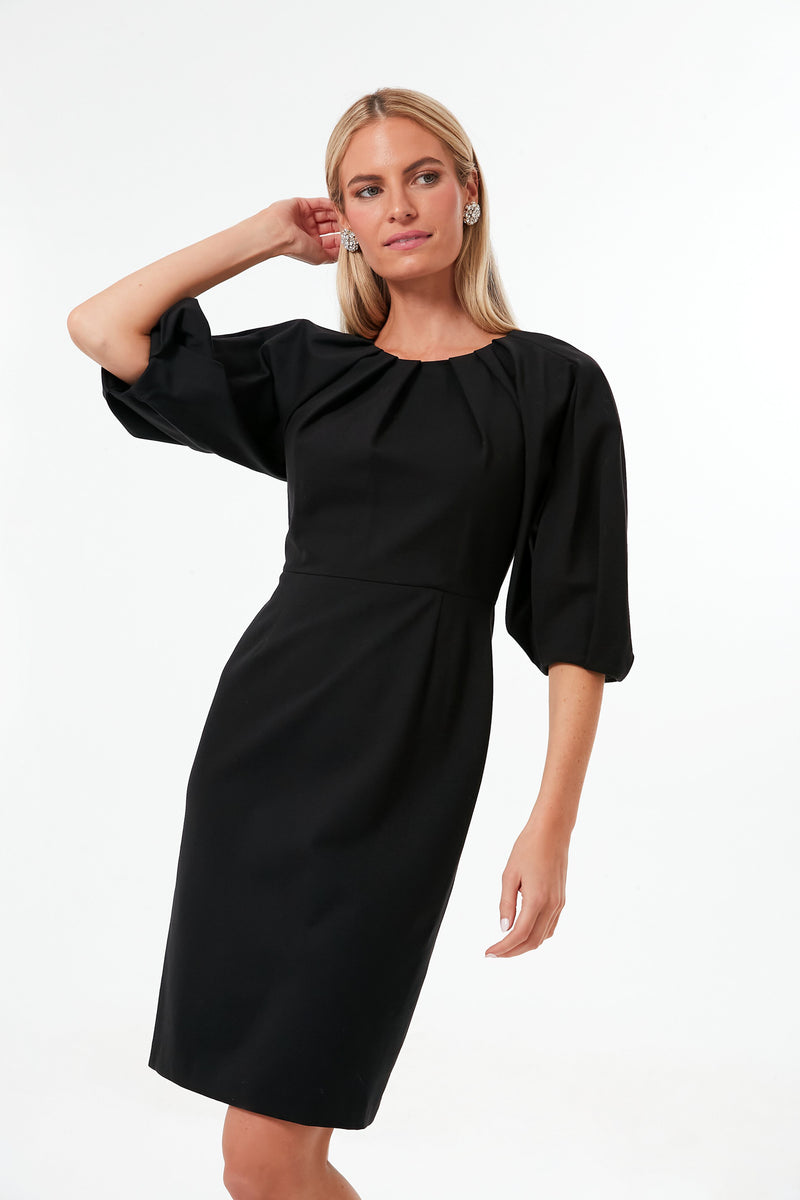The Black Pleated Shoulder Ponte Dress is one of those styles that is perfect to keep in your closet to ensure you still look incredible even for the most last minute of plans. Perfect for a variety of occasions, this knee-length sheath features elbow length puffed sleeves and gathered pleats that add a bit of dimension and intrigue. Style this silhouette for a board meeting with kitten heels, with a sparkly clutch for an evening soiree, or with flats for a birthday dinner — this chic LBD does it all.