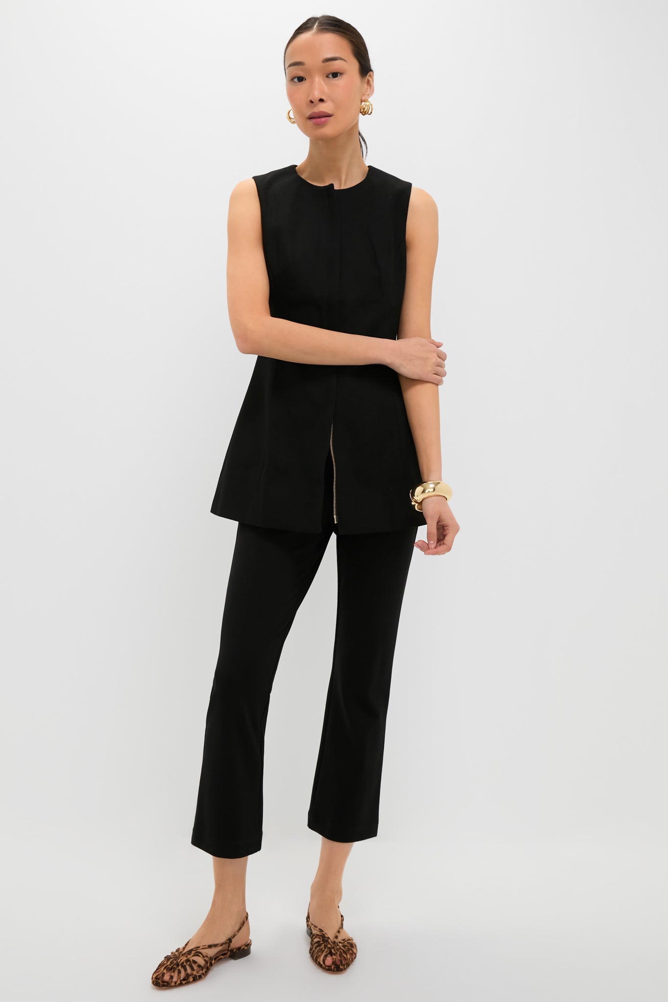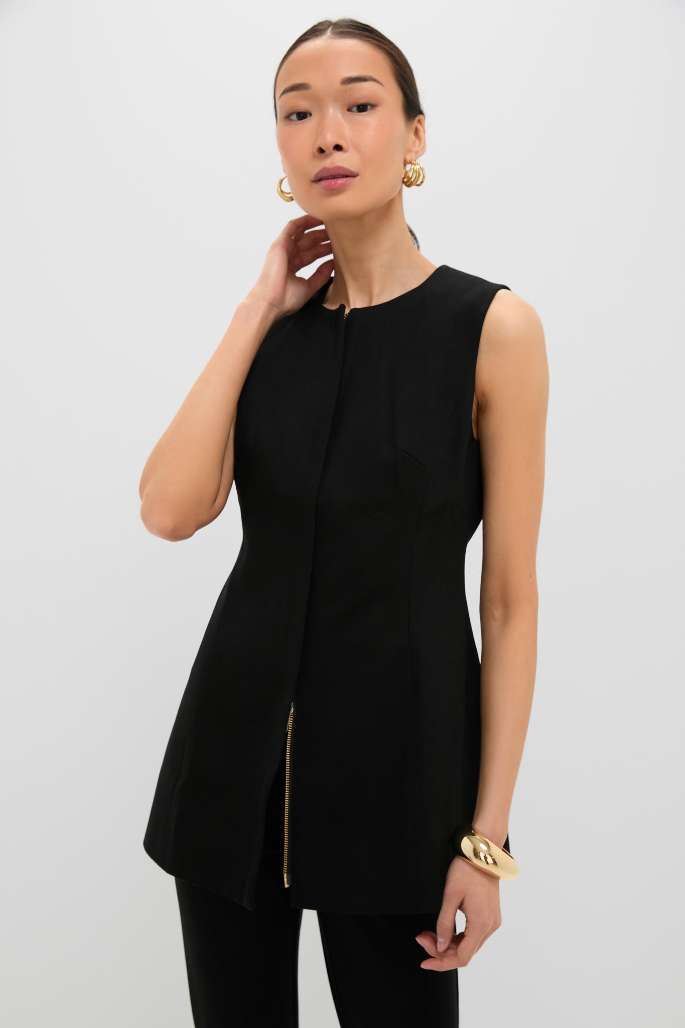 Step out in style in the Rhoda Tunic Top. Featuring an elegant silhouette, this sleeveless blouse is perfect for everything from date night to cocktail. Pair with gold accessories and trousers for a look that is sure to stun, or wear with denim and golden studs for a casual yet elevated look.