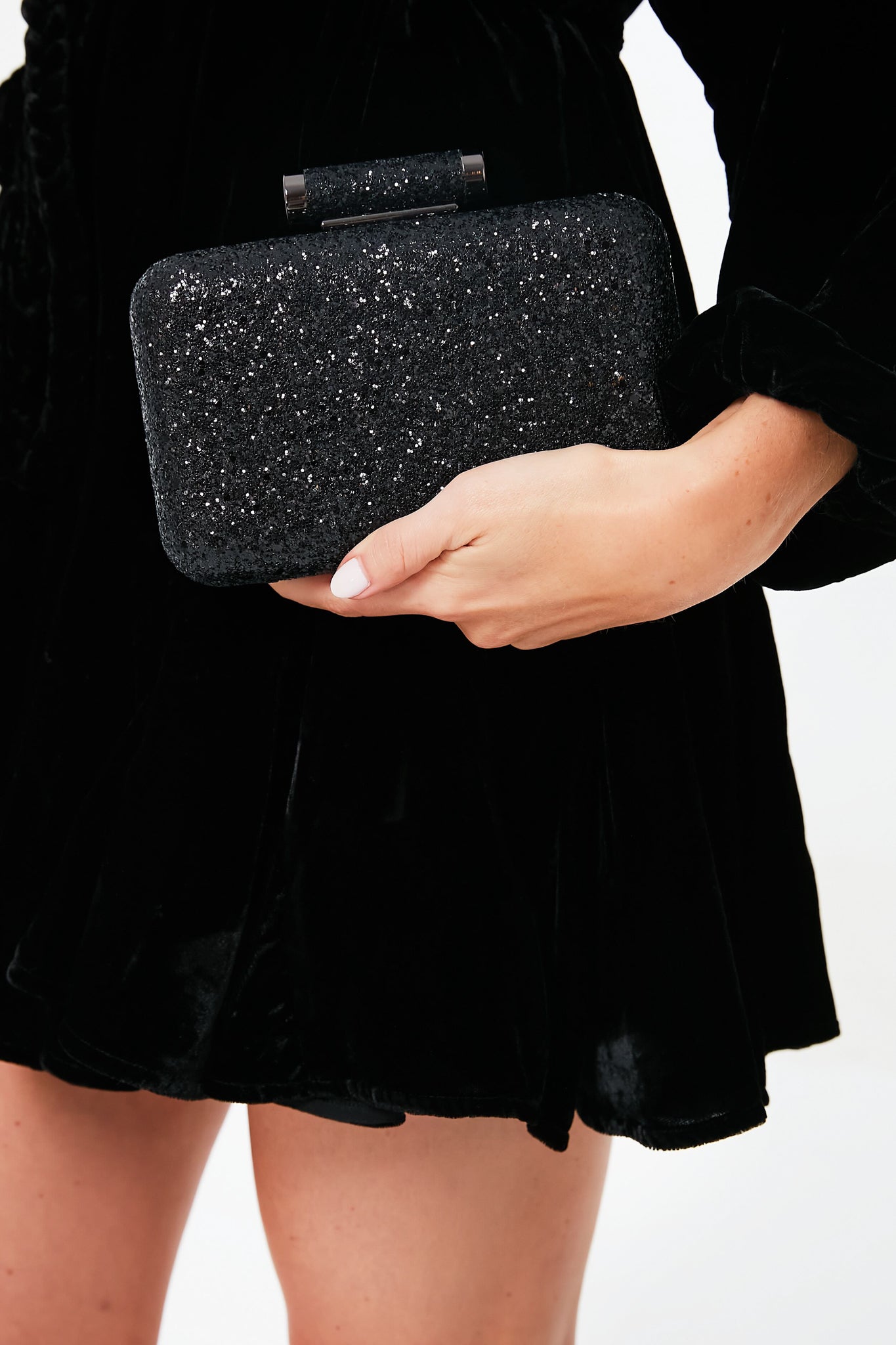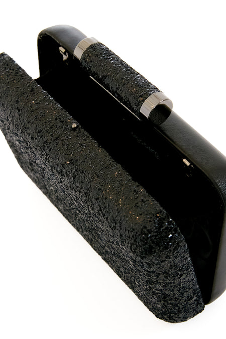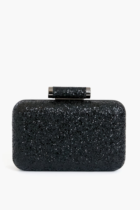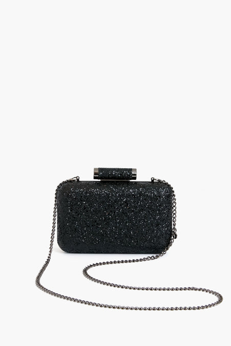 The Black Rosie Glitter Clutch features a sparkly finish on one side and matching vegan leather on the other, practically giving you two bags in one. With gleaming gunmetal-toned hardware and a block lock closure, this bag brings just enough edge to any outfit. Carry this shimmery accessory in the palm of your hand as a clutch or use the optional shoulder chain to mix up your look.