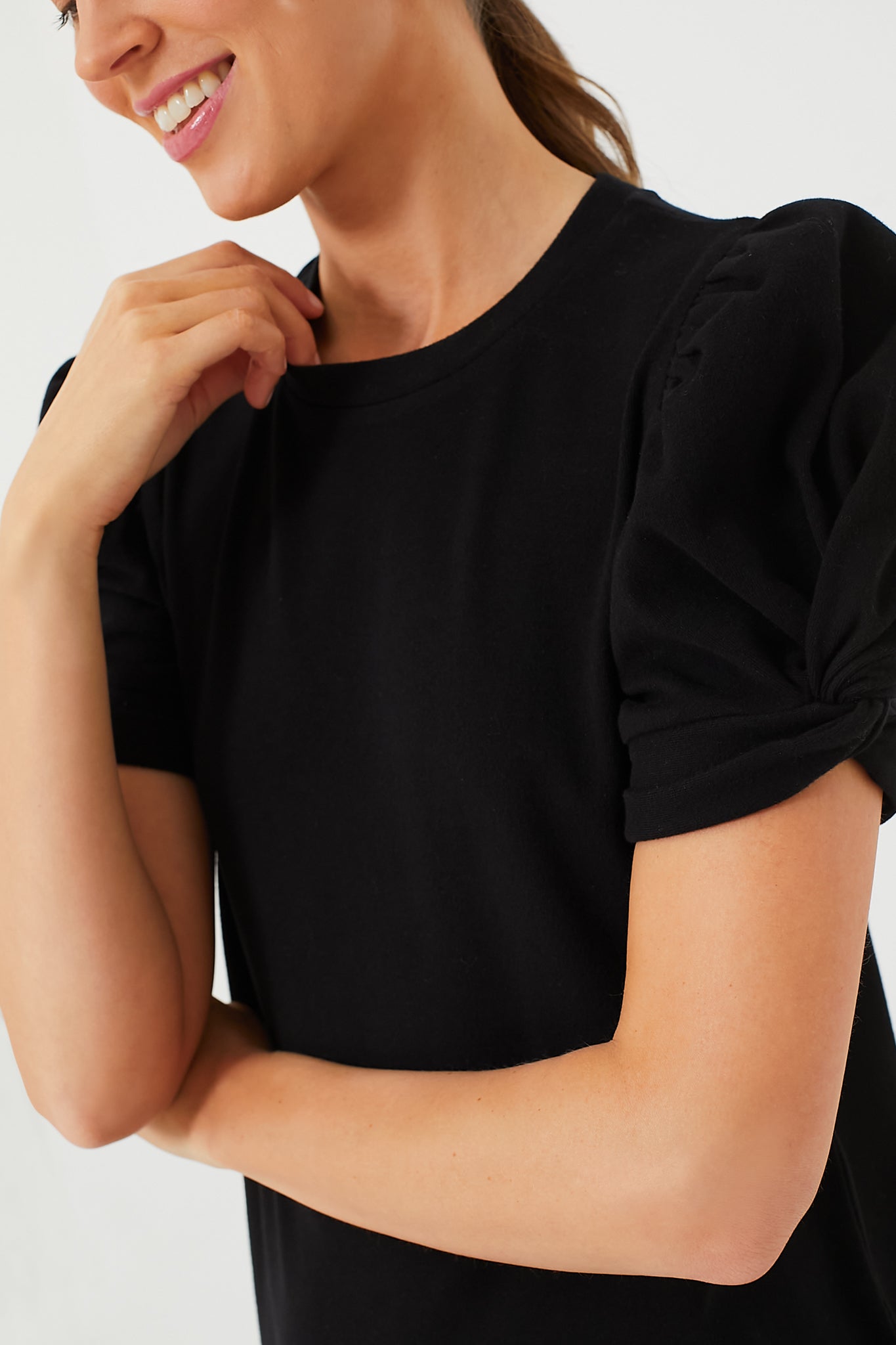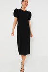 There should be no question why we love a t-shirt dress. Easy and comfortable yet put-together, the Black Vesty Dress features short puffed sleeves for some feminine flair, and a classic crew neckline tied together with a comfortable midi length. From day to night, this dress pairs seamlessly with everything from flats to sneakers and beyond.